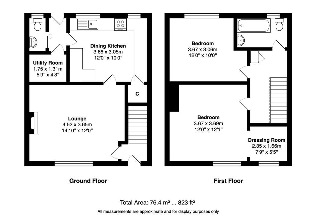 Upstairs, the first-floor landing is spacious and benefits from a built-in cupboard and access to the loft space. The master bedroom enjoys an open archway into the third bedroom, currently used as a dressing room, creating a luxurious suite-like feel. A second good-sized double bedroom is also located on this floor, alongside a stylish, modern bathroom. The third bedroom, though presently used as a dressing room, is a well-proportioned single room that could easily serve as a nursery, home office, or guest bedroom.