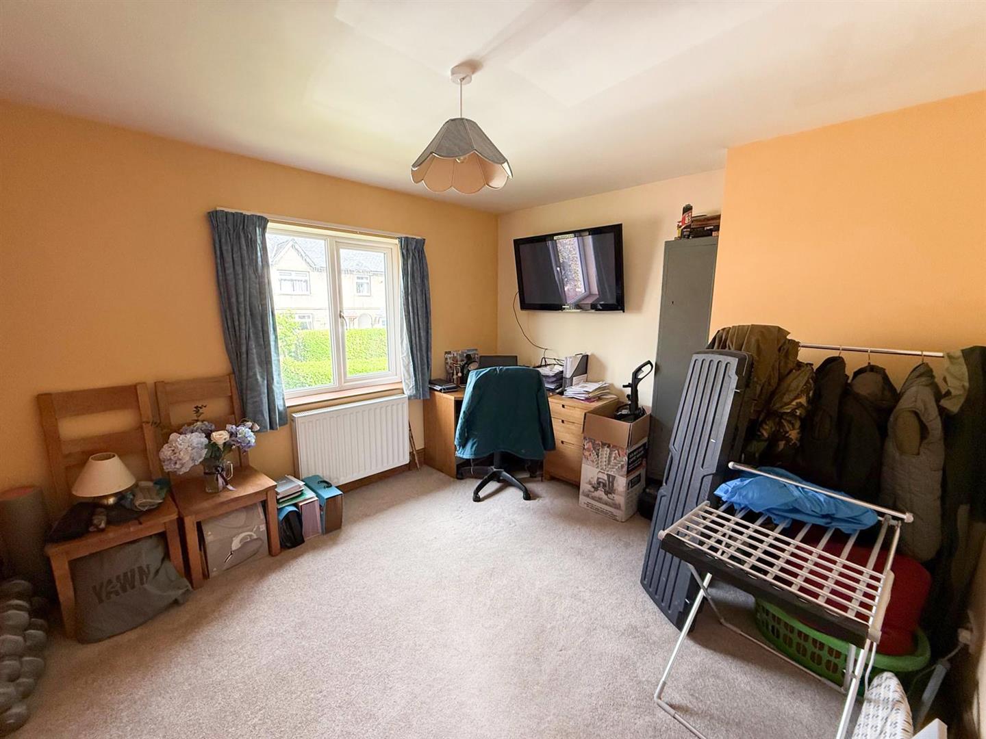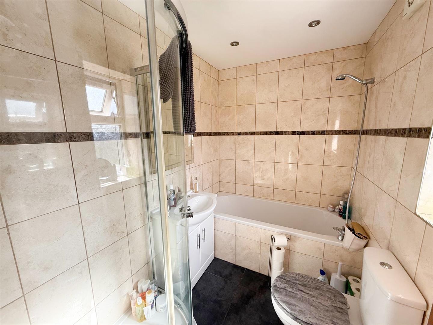 Upstairs, a split-level landing leads to the impressive master bedroom — formerly two separate rooms — which boasts dual-aspect views offering delightful glimpses of the rear garden and beyond. The master also enjoys a luxurious en-suite shower room, fitted with contemporary fixtures and finishes. There is a further generously sized double bedroom and a stylish, modern house bathroom, completing the first-floor accommodation.
