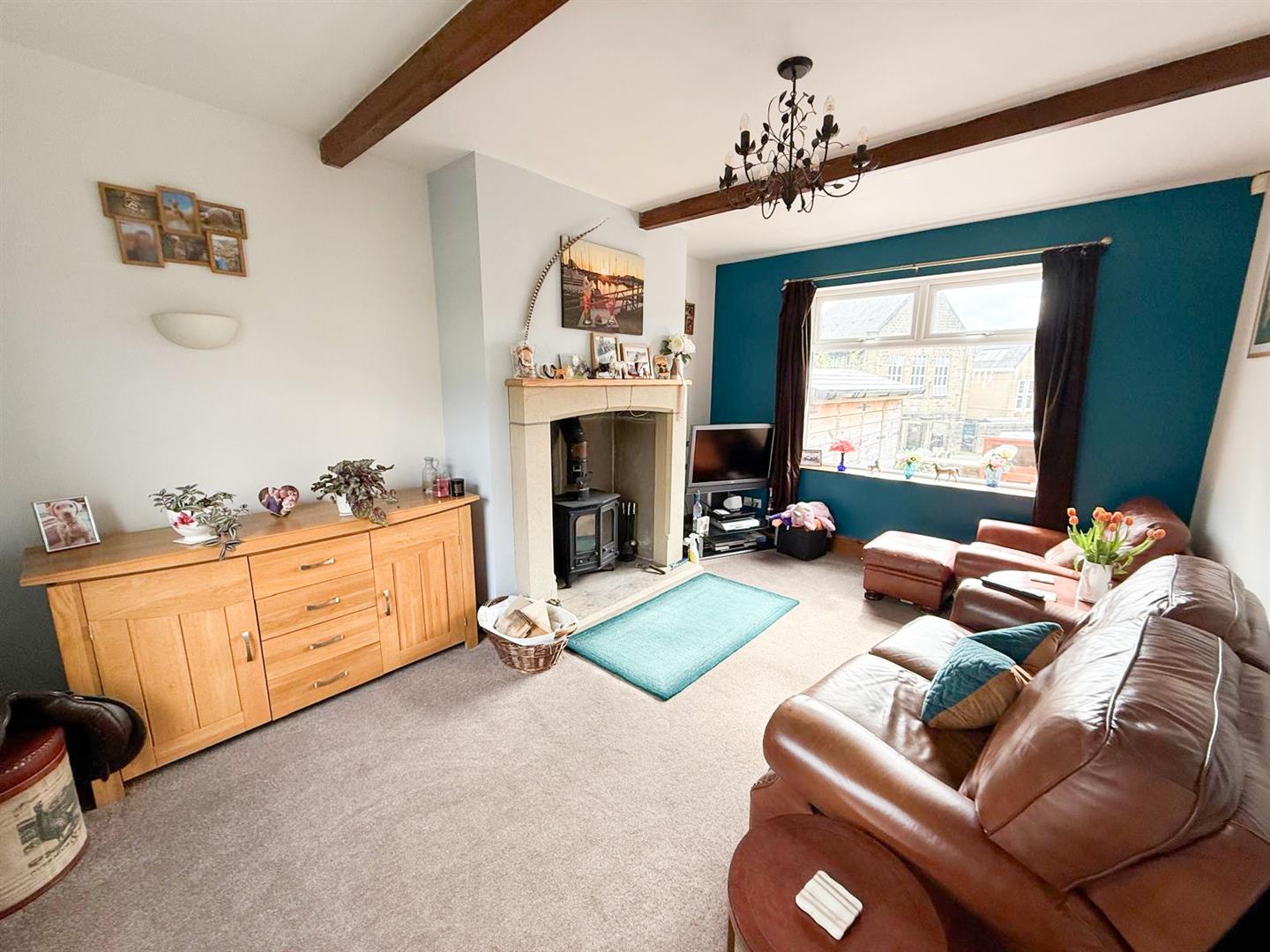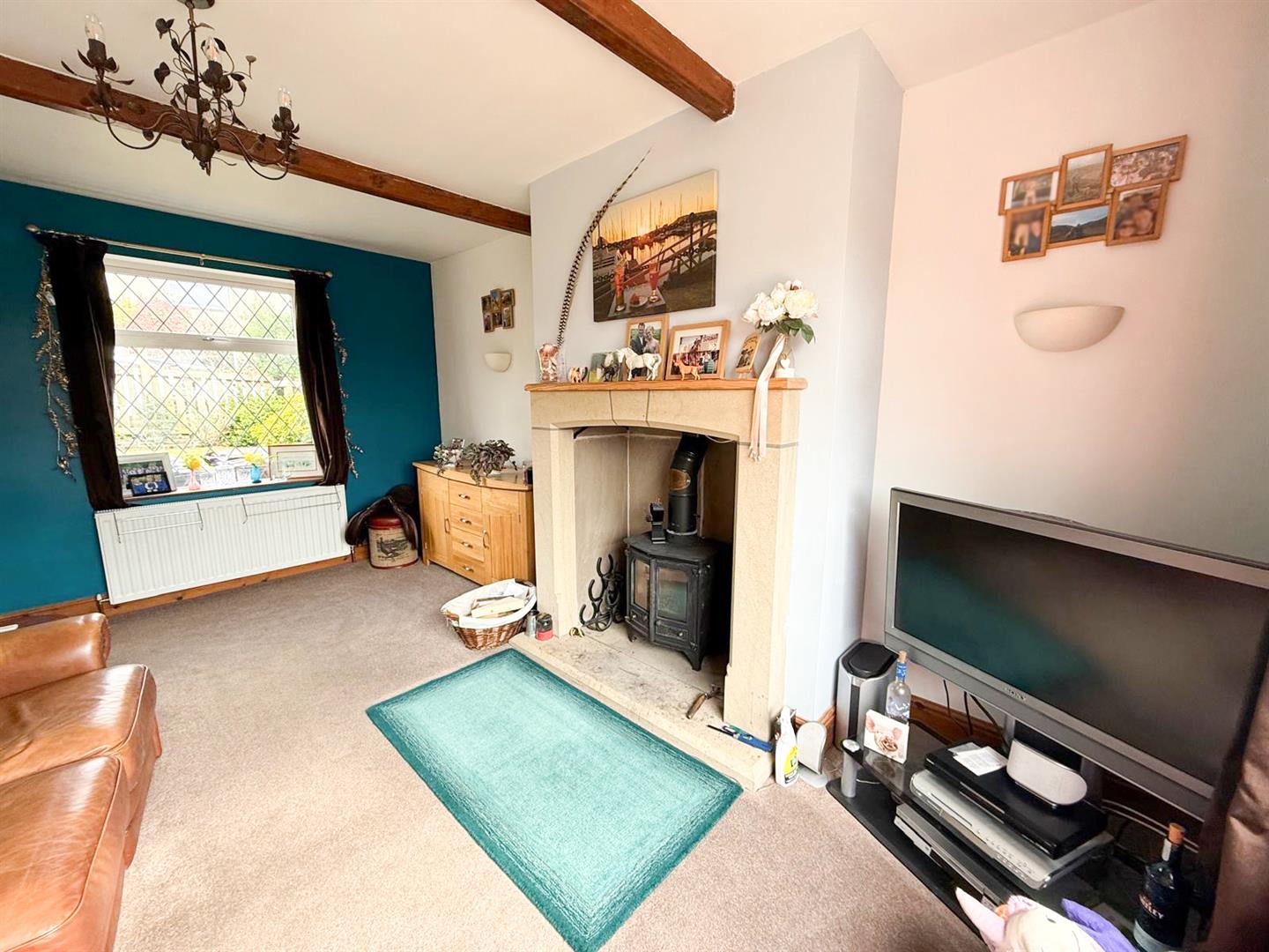 Step through the welcoming front door into a bright entrance hall, where an enclosed staircase rises to the first floor. To the left, you’ll find the warm and inviting sitting room, flooded with natural light from dual-aspect windows that overlook the surrounding gardens. A charming feature fireplace with a multi-fuel stove forms the heart of the room, complemented by characterful ceiling beams that add a rustic touch.