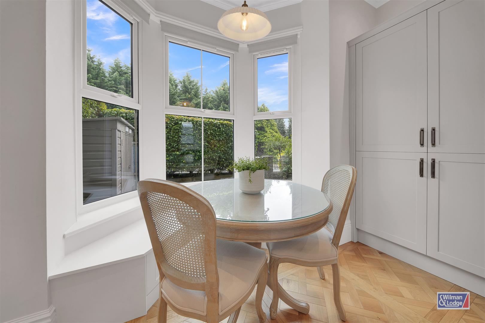 The ground floor sets the tone for this impressive home. From the moment you enter, the spacious hallway impresses with its original coving, high ceilings, wood panelling and natural stone tiled flooring. The showpiece kitchen and dining space is the true heart of the home, filled with natural light from dual aspect windows and finished with luxurious oak Versailles parquet flooring. Solid Ash cabinetry, Silestone quartz worktops and premium Smeg and Neff appliances make this kitchen a dream for both cooking and entertaining, while a large island with breakfast bar provides a perfect family gathering spot. Open to the kitchen is the stylish sitting room, where two large windows overlook the garden and a feature fireplace with multi-fuel stove creates a cosy yet elegant atmosphere. Completing this level is a practical utility area and a beautifully appointed WC with quartz-topped vanity.