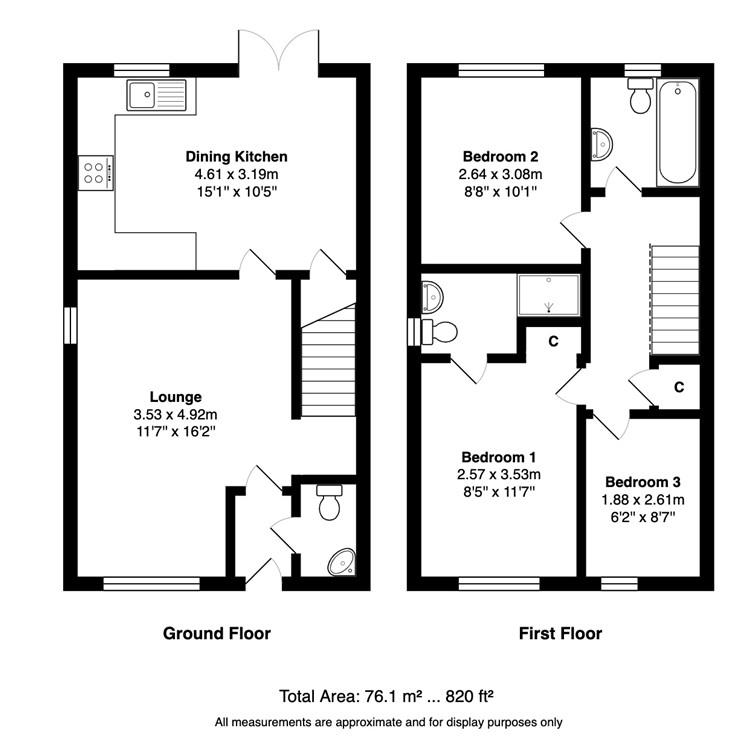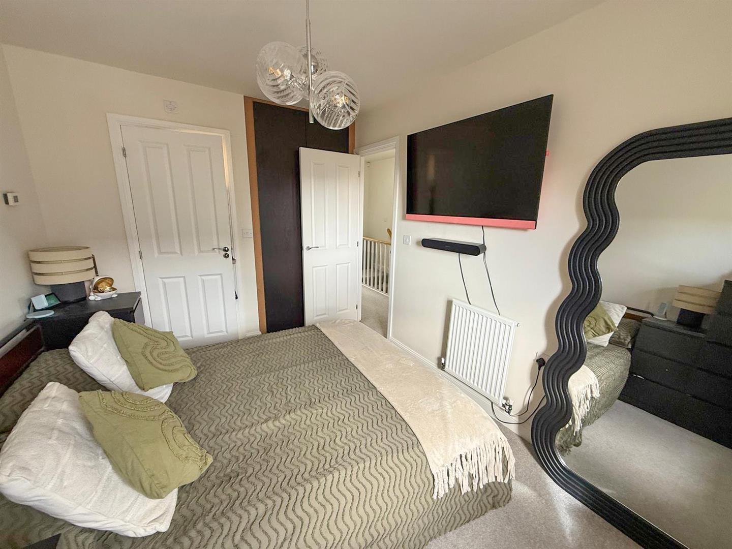 Upstairs, a generous landing leads to three well-proportioned bedrooms. The master is beautifully presented, complete with a chic en-suite shower room and built in wardrobes. A further double bedroom and a good-sized single –currently used as a home office, offer versatile living options, while a large built-in cupboard provides additional storage. The house bathroom completes this floor with a three piece white suite including a fitted shower above the bath with glass screen.