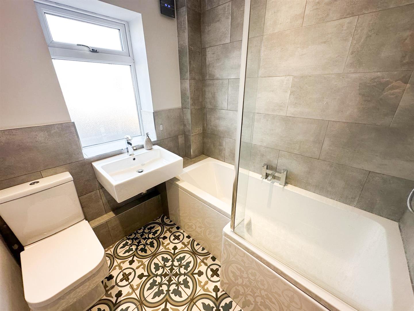 Upstairs, two generously sized double bedrooms provide ample space, with the master bedroom benefiting from fitted wardrobes and stunning views over rooftops toward the hillside. The third bedroom, a good-sized single, offers versatility for a home office or guest room. A modern house bathroom completes the upper level, ensuring comfort and convenience.