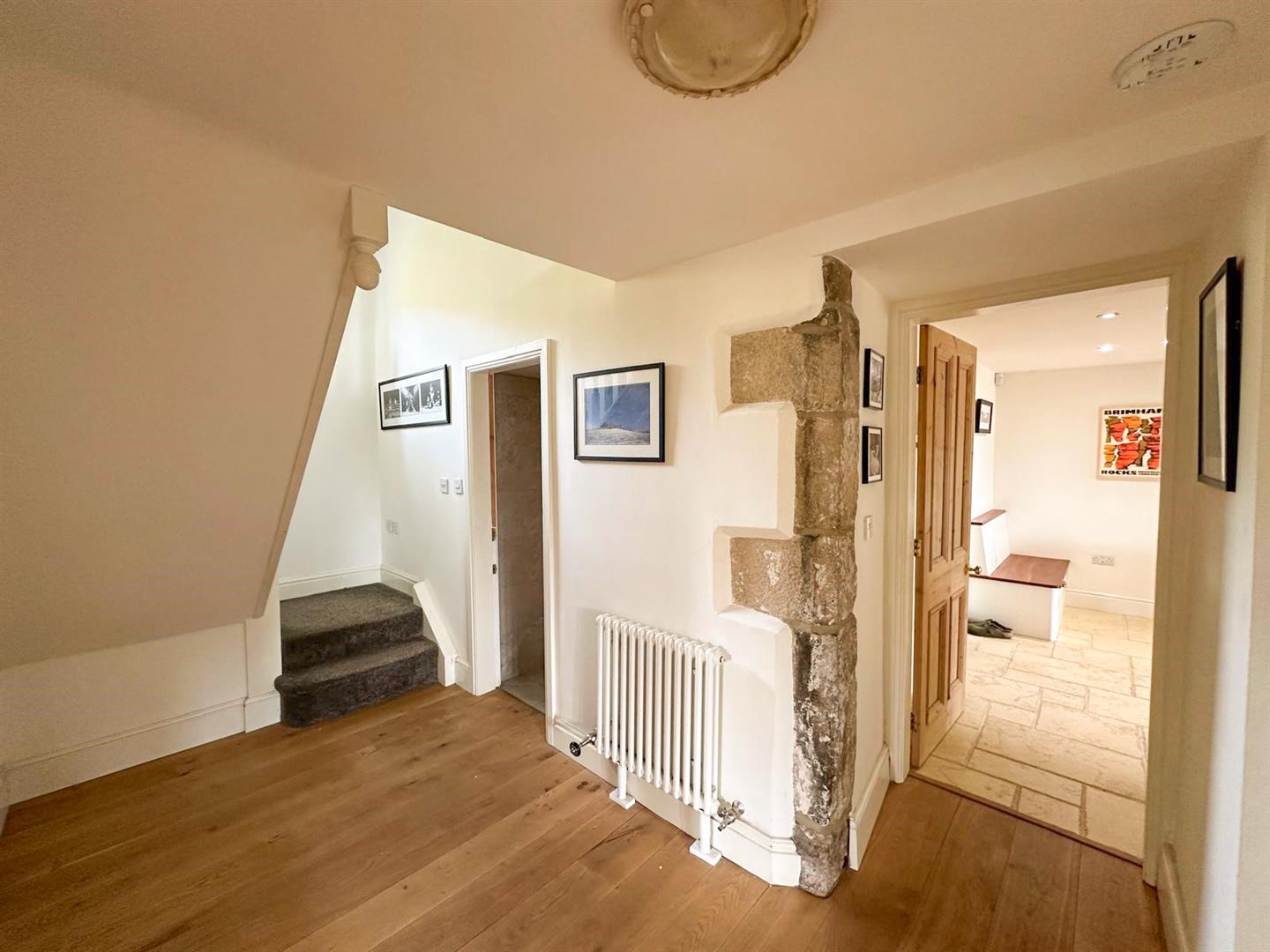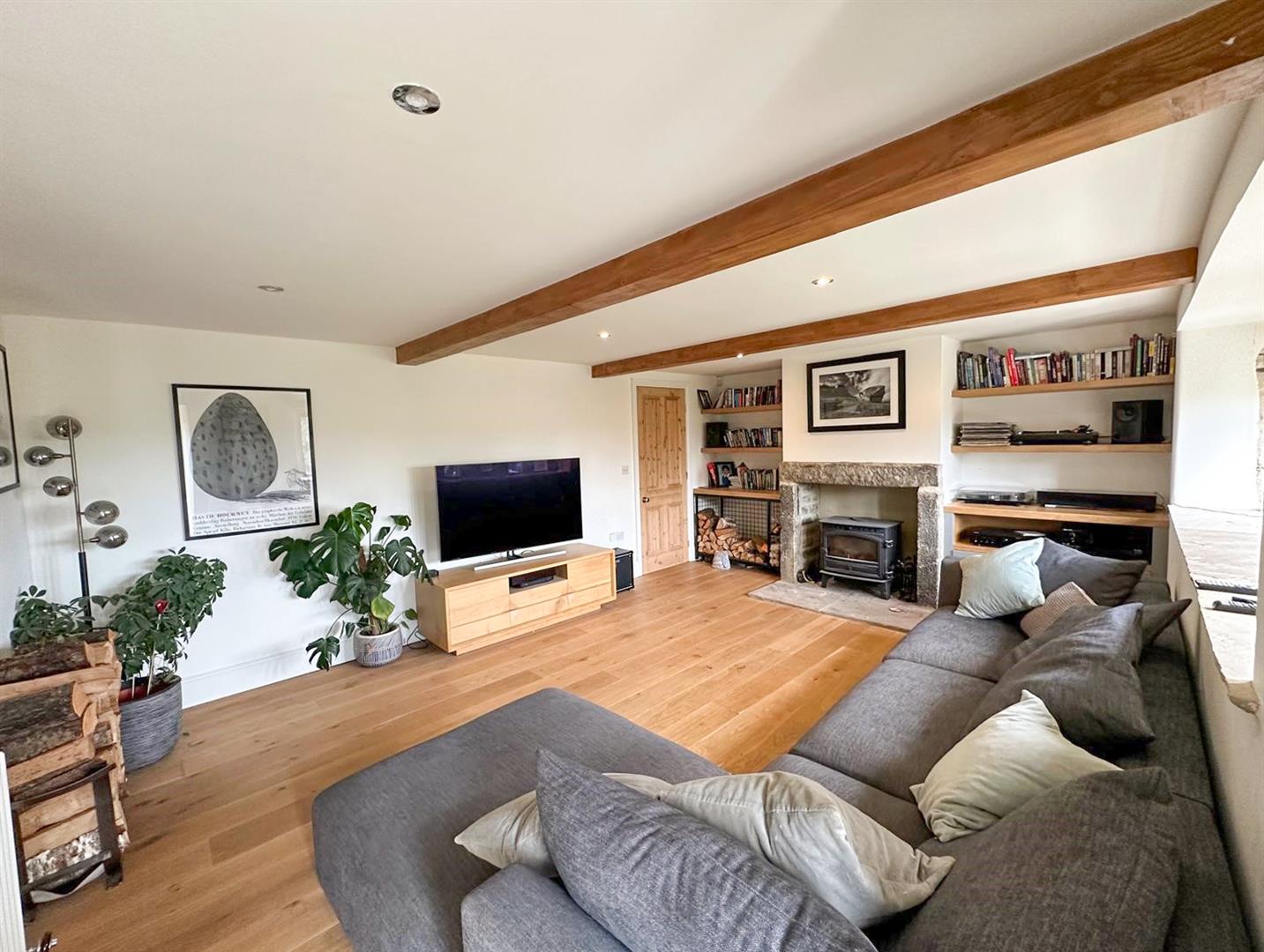 The property features an entrance porch leading to a bespoke dining kitchen, complete with a separate utility room. An inner hall with exposed stonework guides you to a spacious living room with a multi-fuel stove and breath-taking panoramic views. There is also a separate dining room/second reception room with bi-folding doors, and a ground floor cloakroom.
