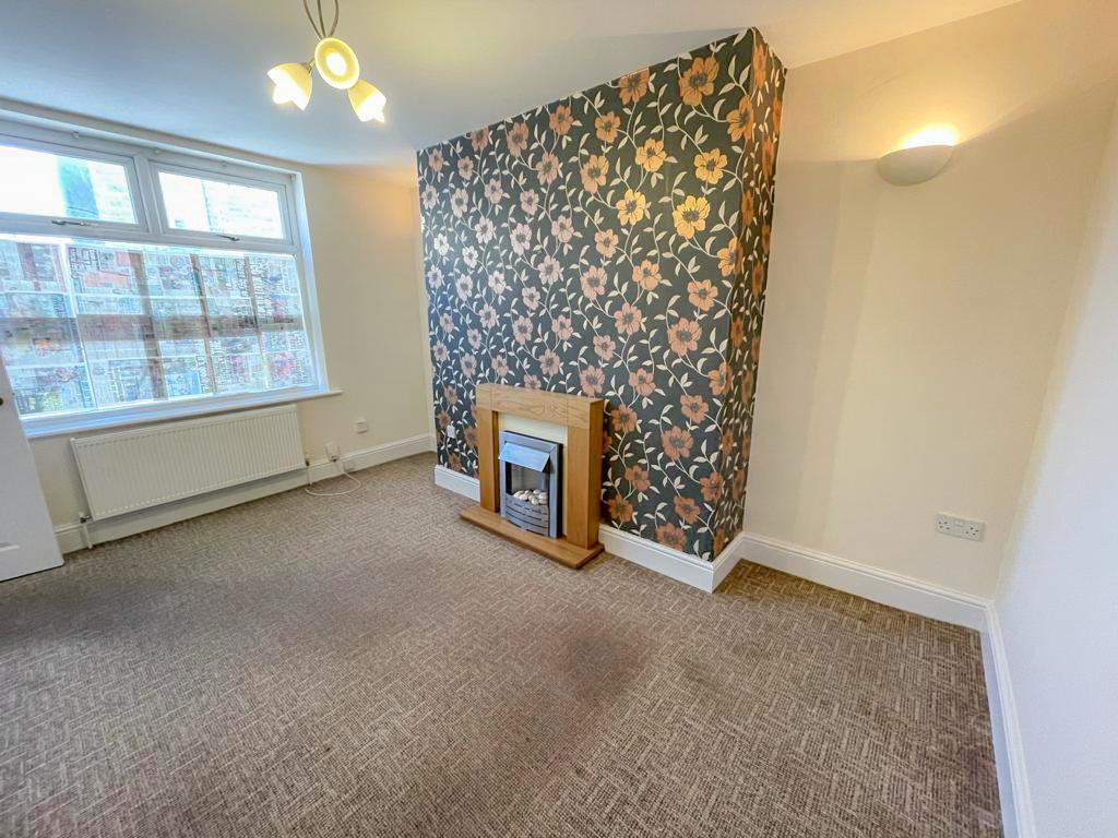 with feature fireplace with light wood surround and inset pebble style electric fire. uPVC sealed unit double glazed window to the front elevation. Wall lights and carpet flooring.
