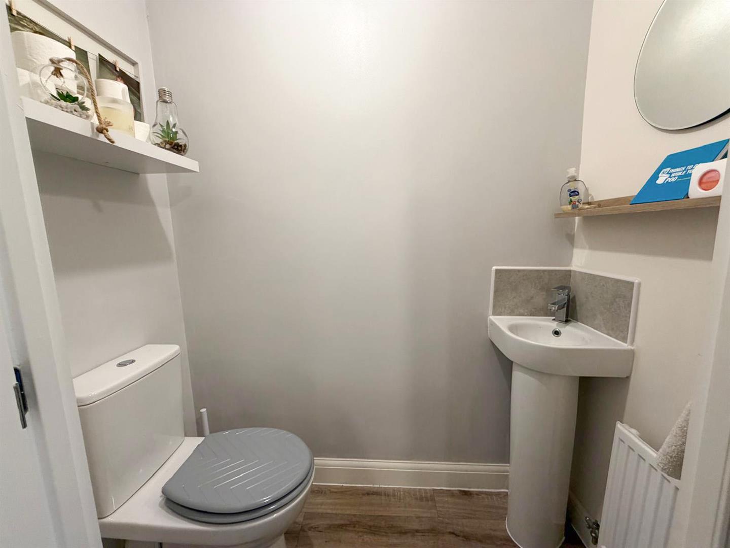 Step through the front door and into a welcoming entrance hall that immediately feels like home. A handy cloakroom keeps everyday life organised, while a versatile front room provides the ideal space for a home office, playroom, or snug -perfectly suited to the changing needs of family living. At the heart of the home sits a stunning open-plan kitchen, dining and living area that’s filled with natural light. The modern kitchen is fully equipped with an integrated fridge/freezer, dishwasher, provisions for a washing machine, electric oven and gas hob, making family mealtimes and entertaining a pleasure. French doors open directly onto the garden, creating a wonderful flow between indoor and outdoor living -perfect for summer BBQs, children’s playtime or relaxed evenings together. A convenient W.C completes the ground floor.