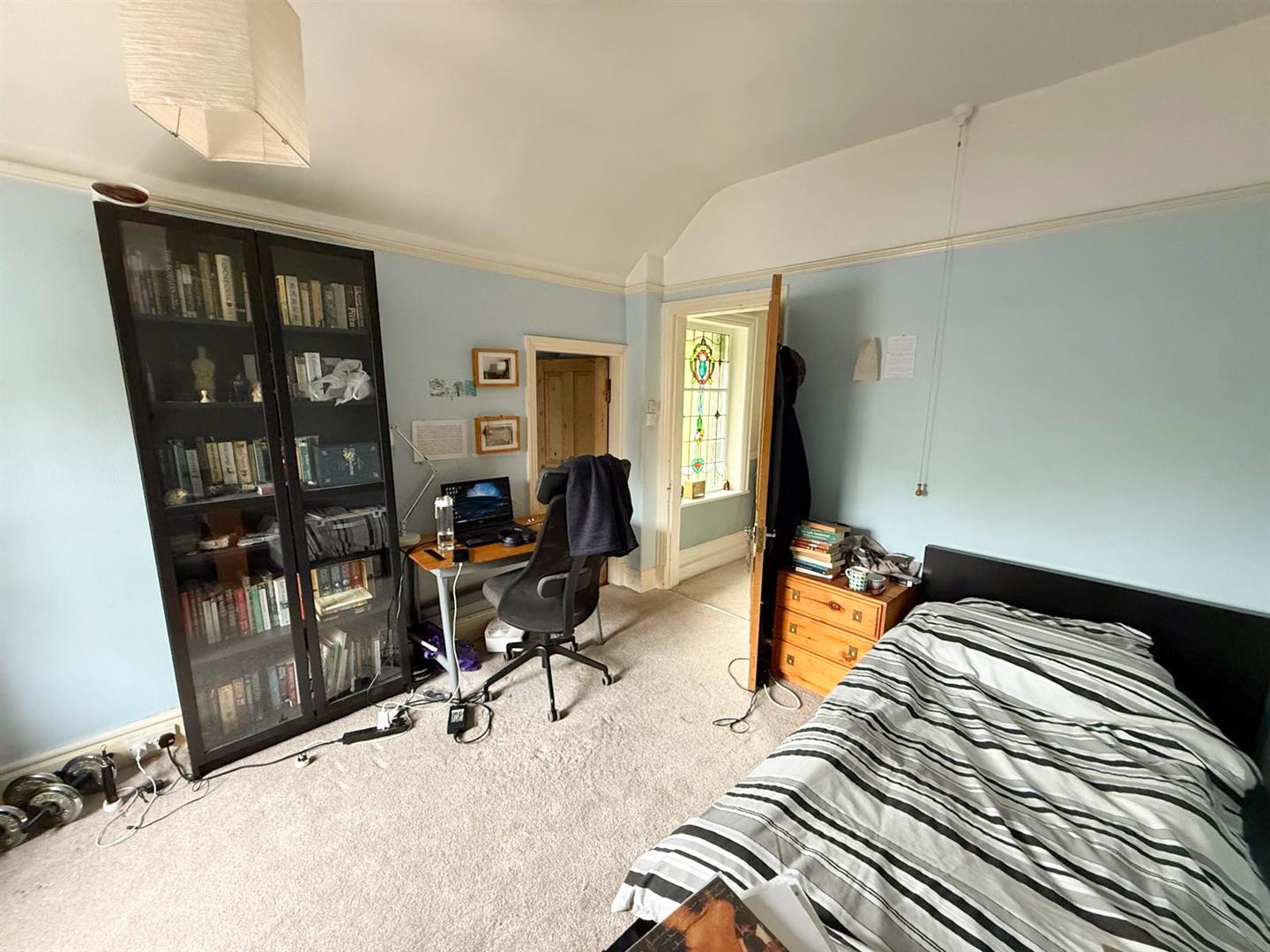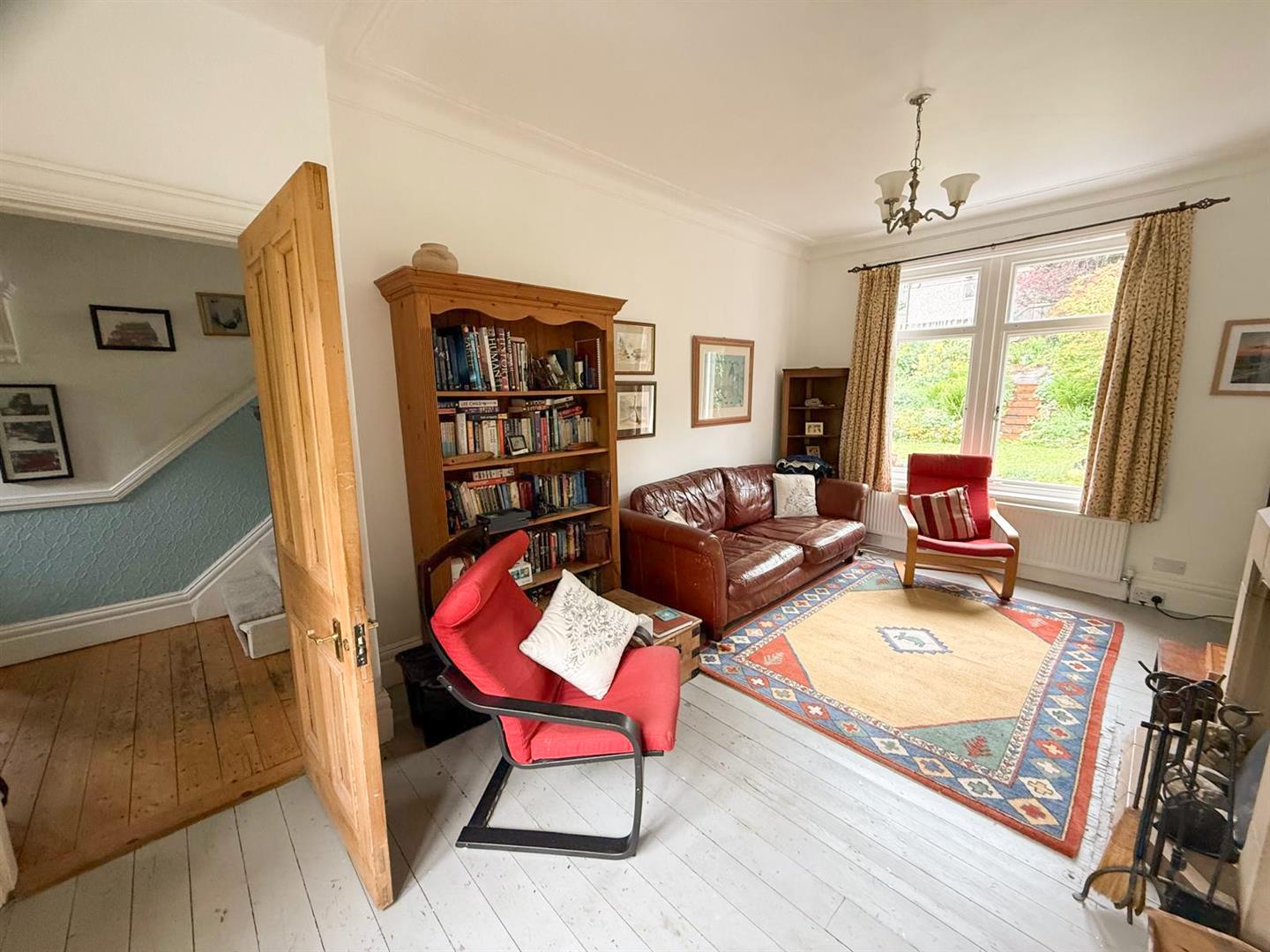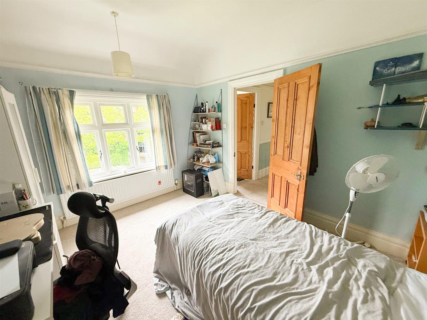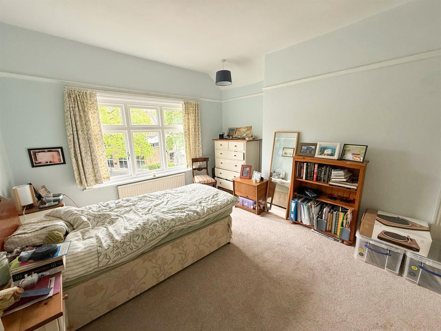 Upstairs, a wide landing with a beautiful stained-glass window leads to two spacious double bedrooms, a further double with additional adjoining box room/dressing area and a comfortable single room, perfect for family living or a home office. The accommodation is completed by a three-piece house bathroom.