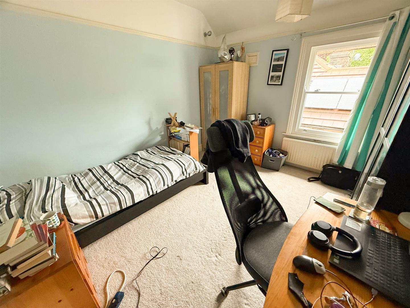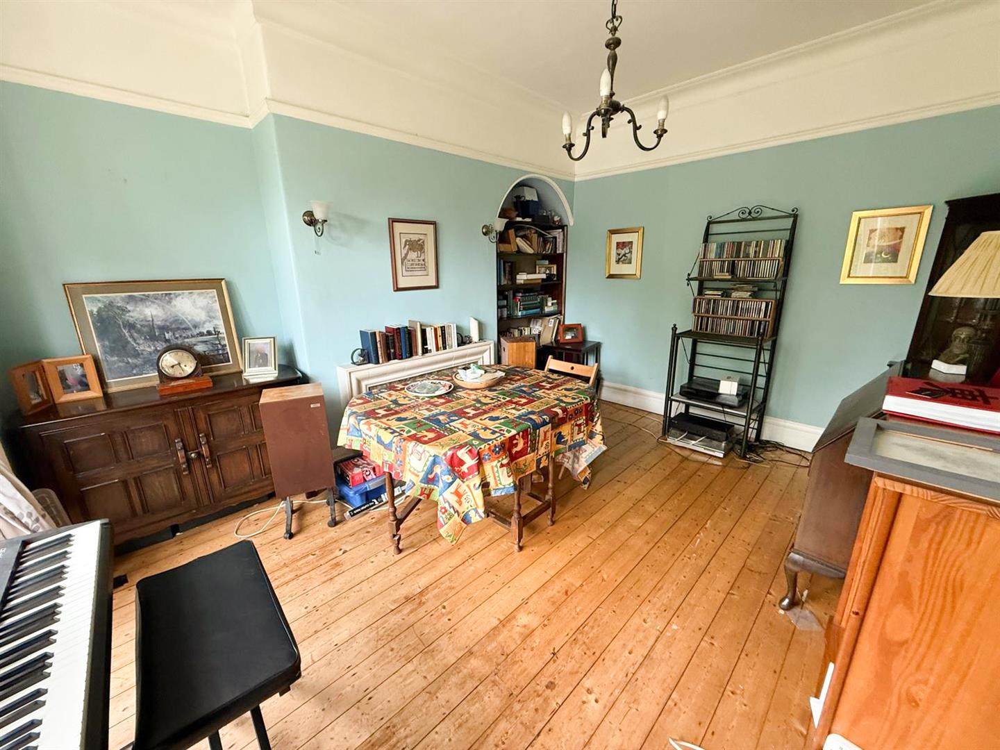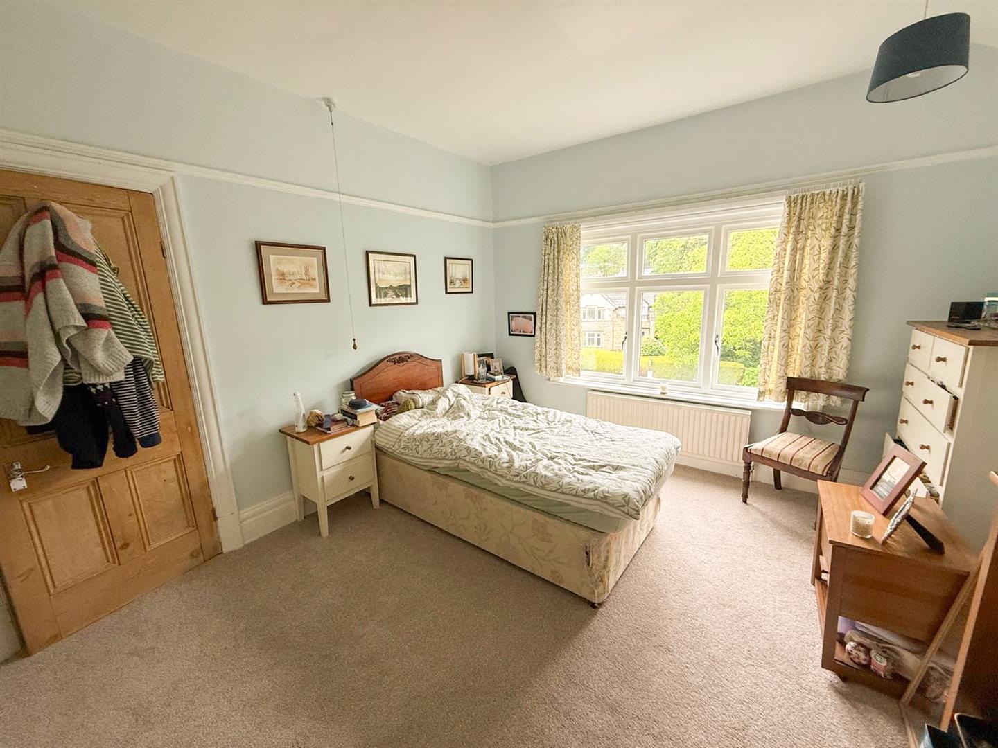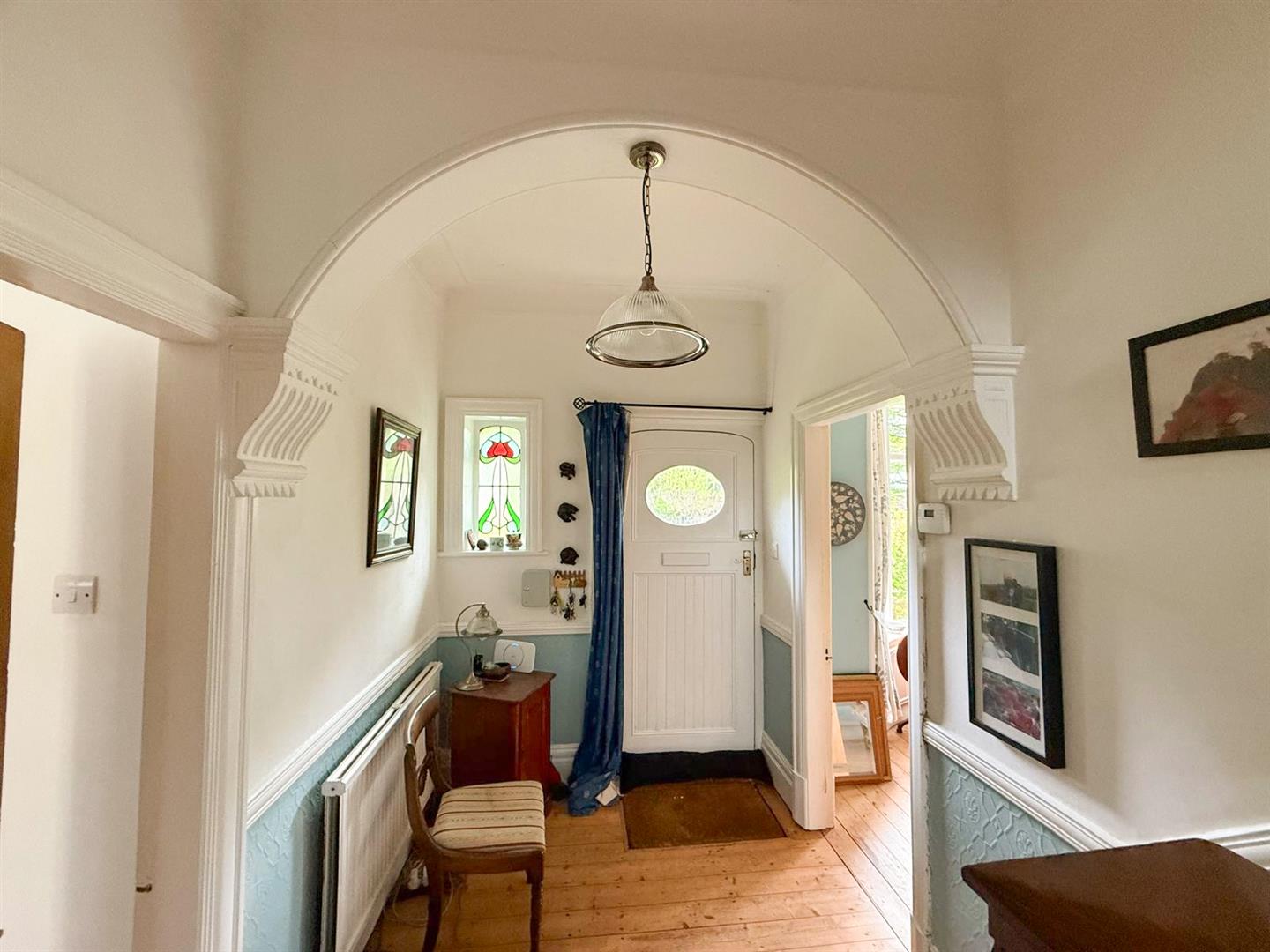 Upstairs, a wide landing with a beautiful stained-glass window leads to two spacious double bedrooms, a further double with additional adjoining box room/dressing area and a comfortable single room, perfect for family living or a home office. The accommodation is completed by a three-piece house bathroom.