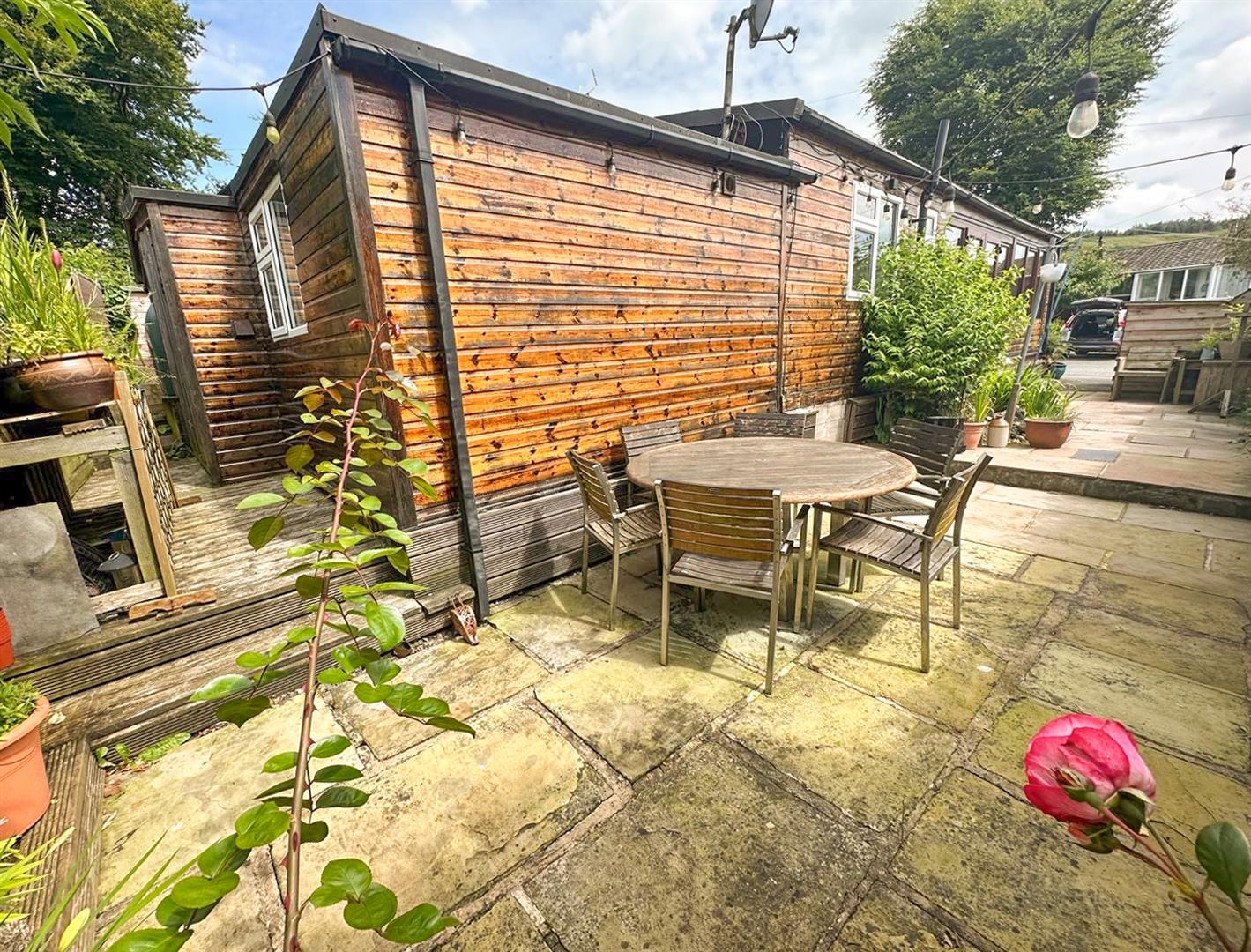 To the front of the property is onsite parking with low maintenance, paved sunny gardens to either side, purpose built store shed and to the rear is built in storage and log store.