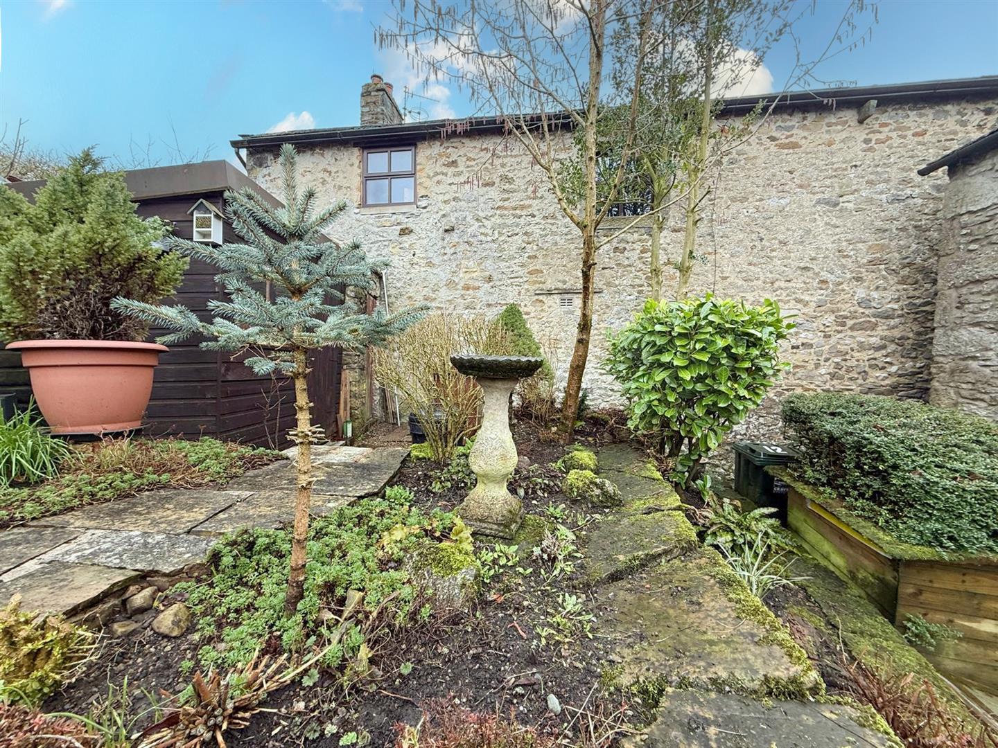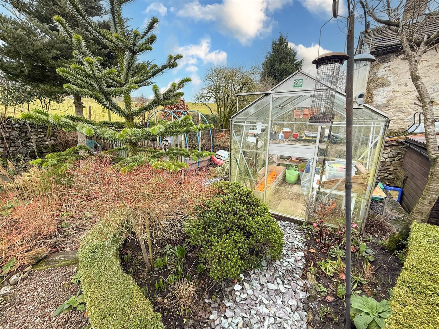 The front of the property offers a small, inviting seating area, while a paved pathway leads to the terraced rear garden, thoughtfully landscaped with multiple seating areas, a greenhouse, a shed, and a charming selection of small trees, shrubs, and bushes. The garden seamlessly adjoins open fields, providing a serene backdrop and a sense of space. Please note that the neighbouring property has access for bins and maintenance.