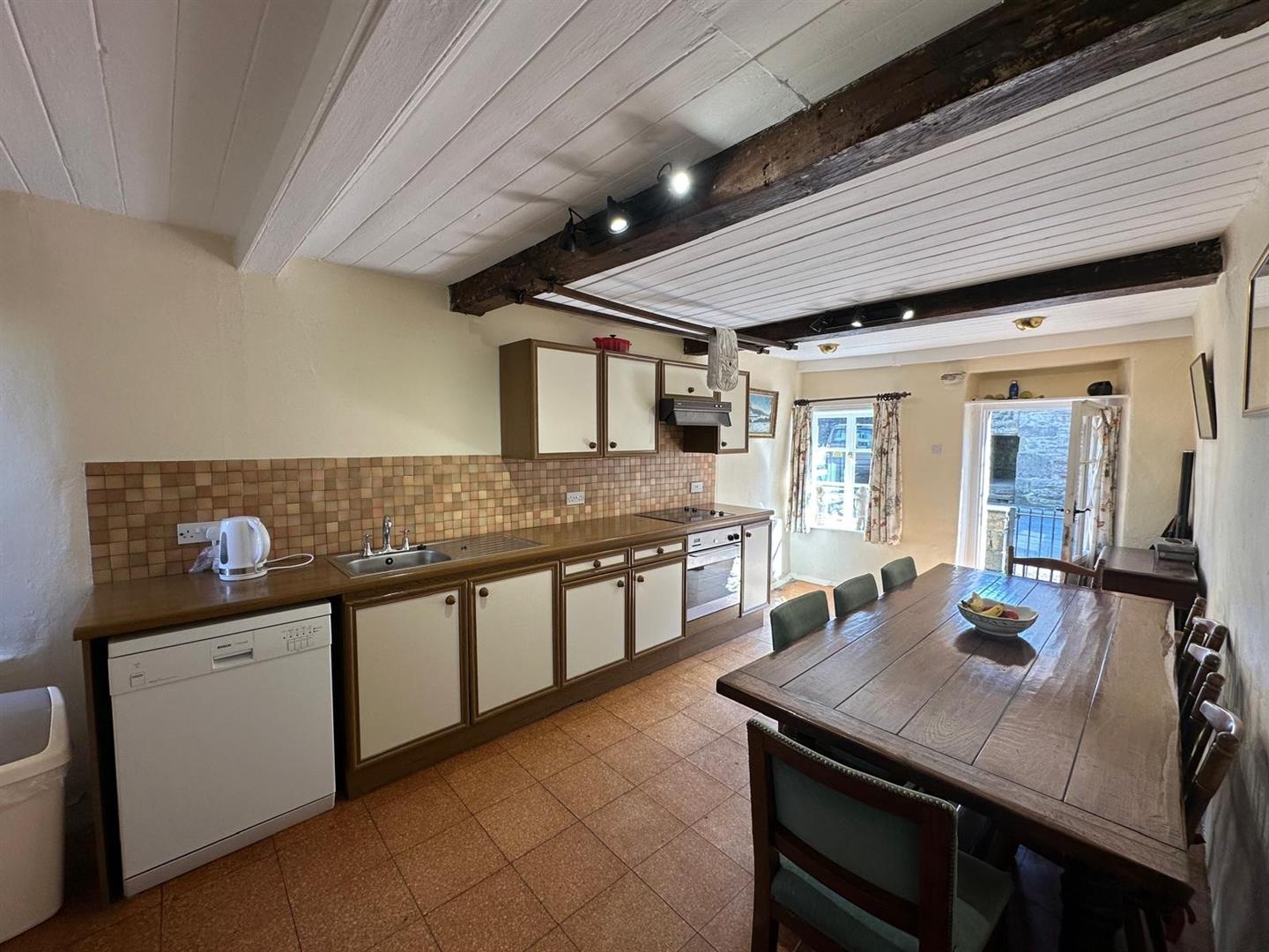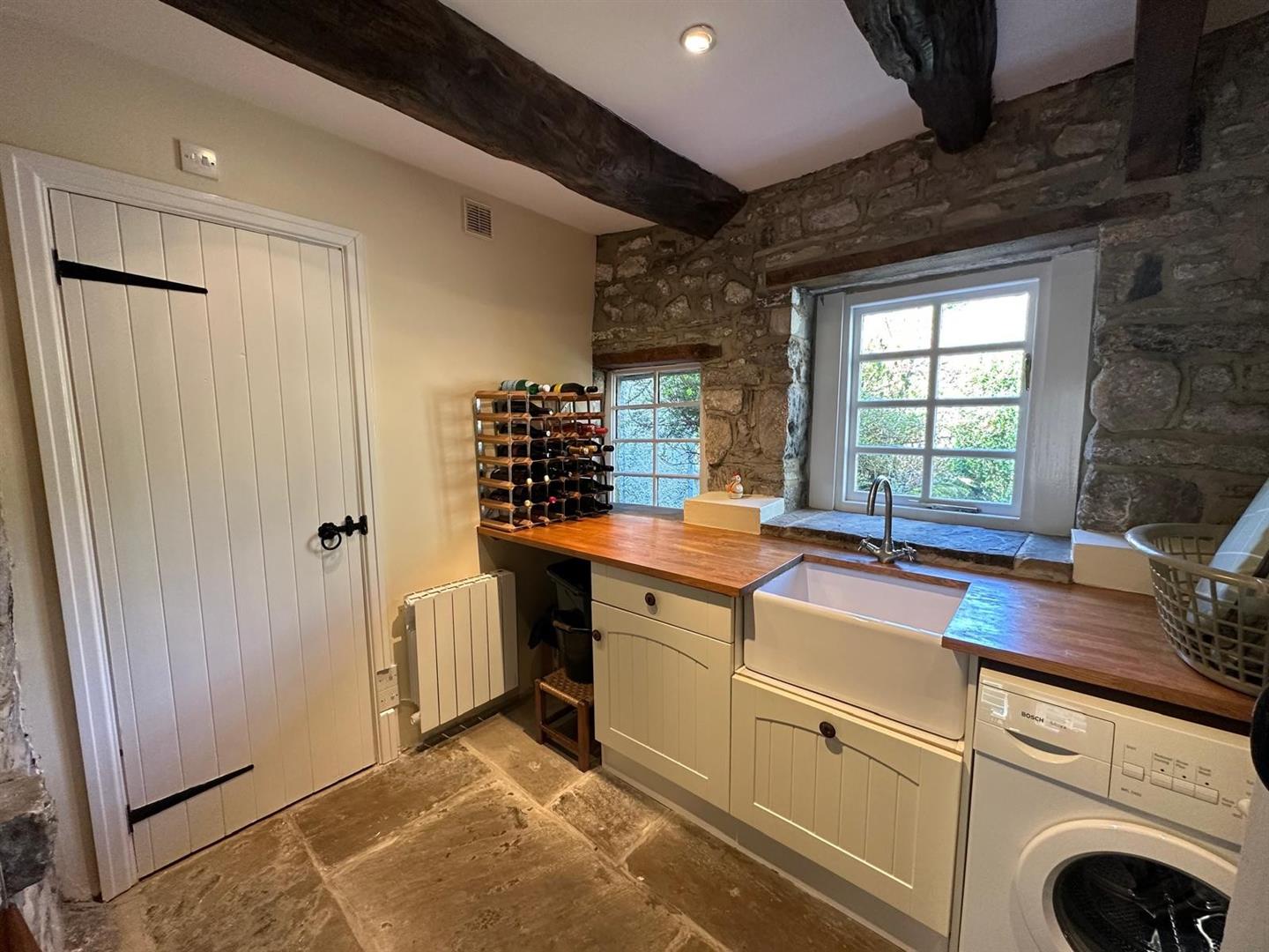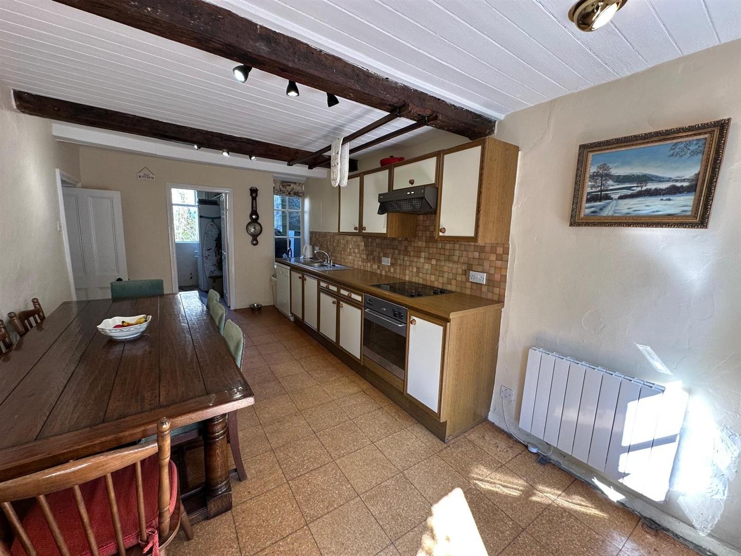 A wrought iron gate welcomes you into the property, leading to a spacious open plan dining kitchen area that instantly captures the home’s rustic charm, with exposed beams and traditional features throughout. To the rear, a practical utility room and wet room provide functionality—ideal for countryside living and outdoor adventures.