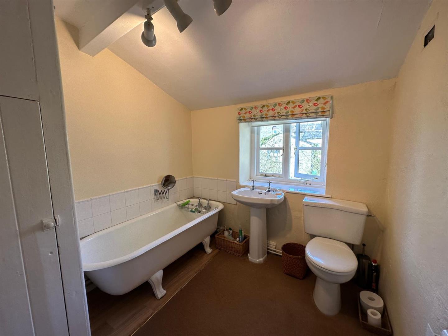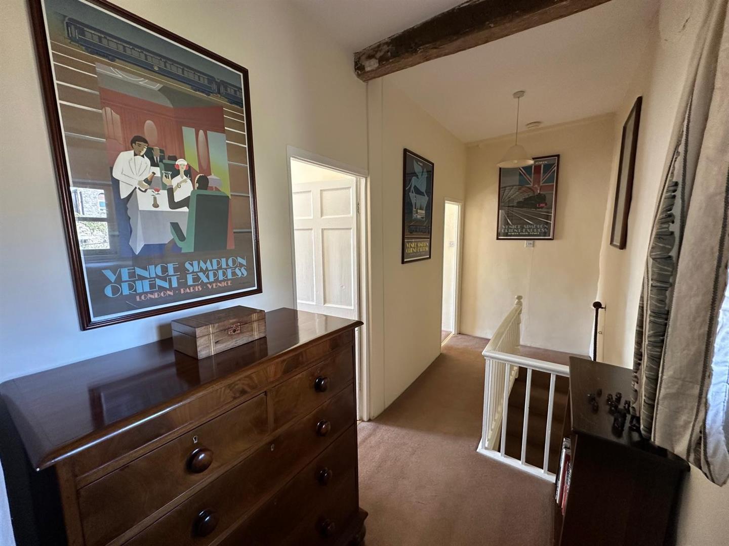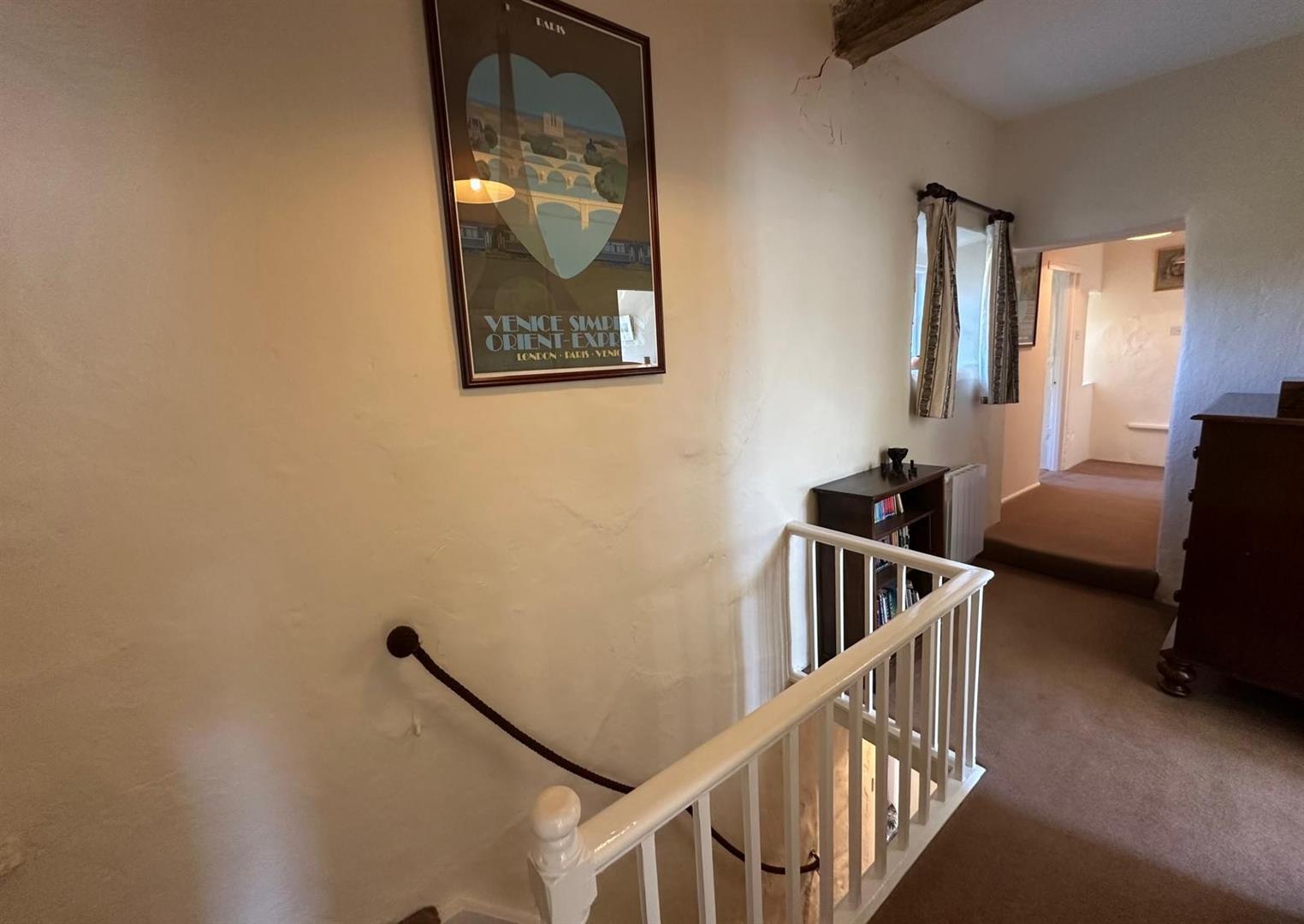 Upstairs, the generous landing—with a rear-facing window offering delightful views—leads to three good sized bedrooms. The master overlooks the picturesque village church and benefits from built-in furniture, while the other two rooms are equally characterful reflecting the home’s heritage. The family bathroom is both traditionally styled and well-proportioned.