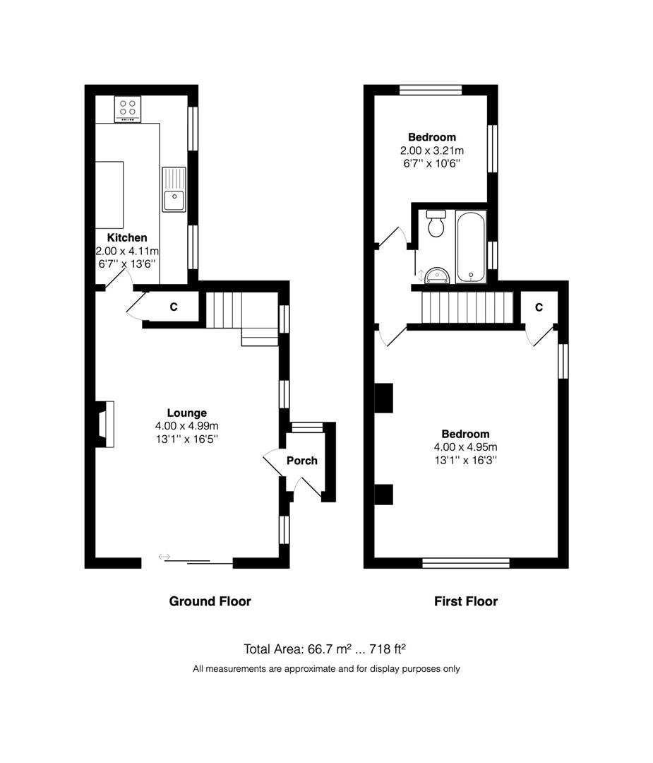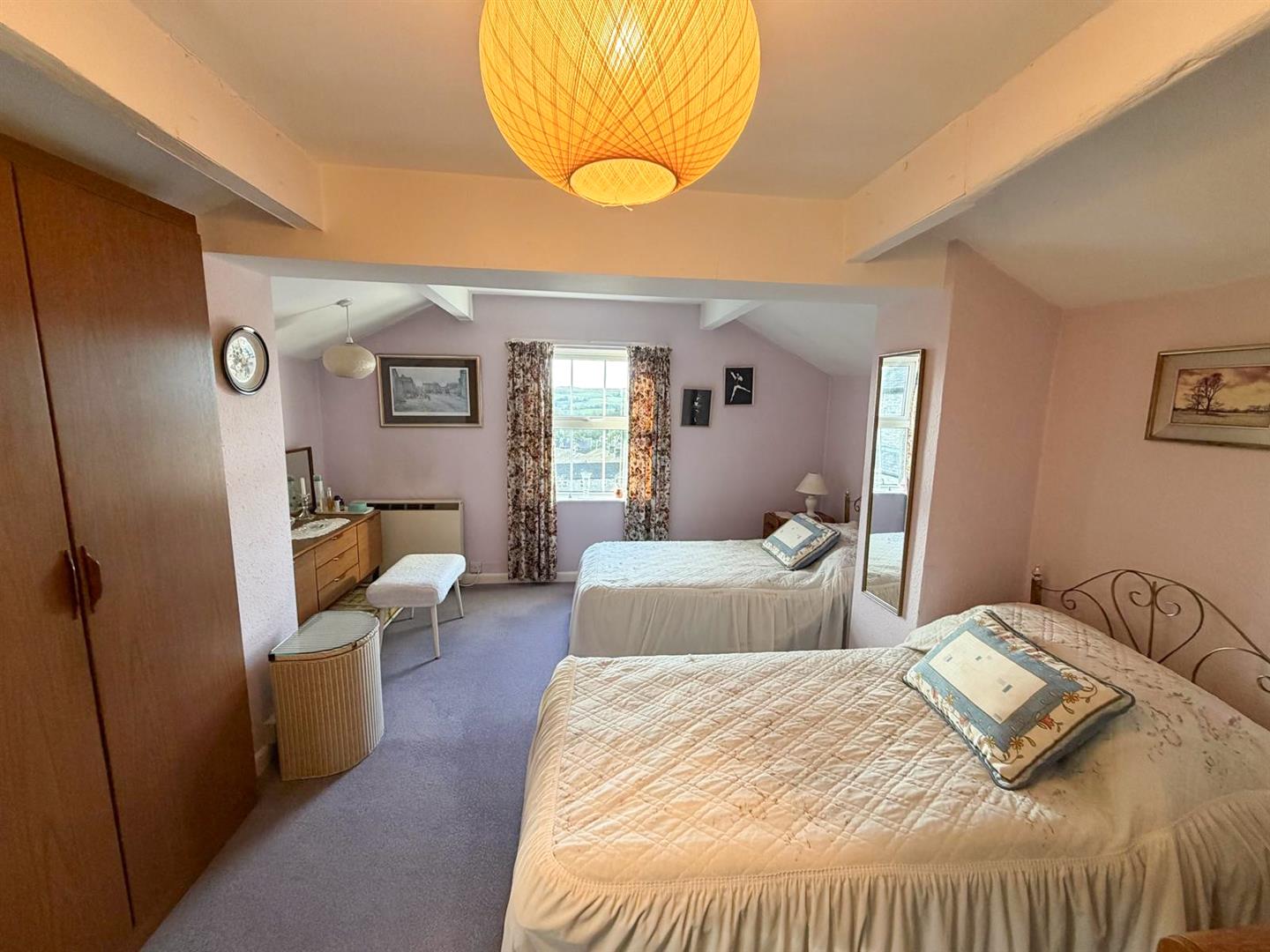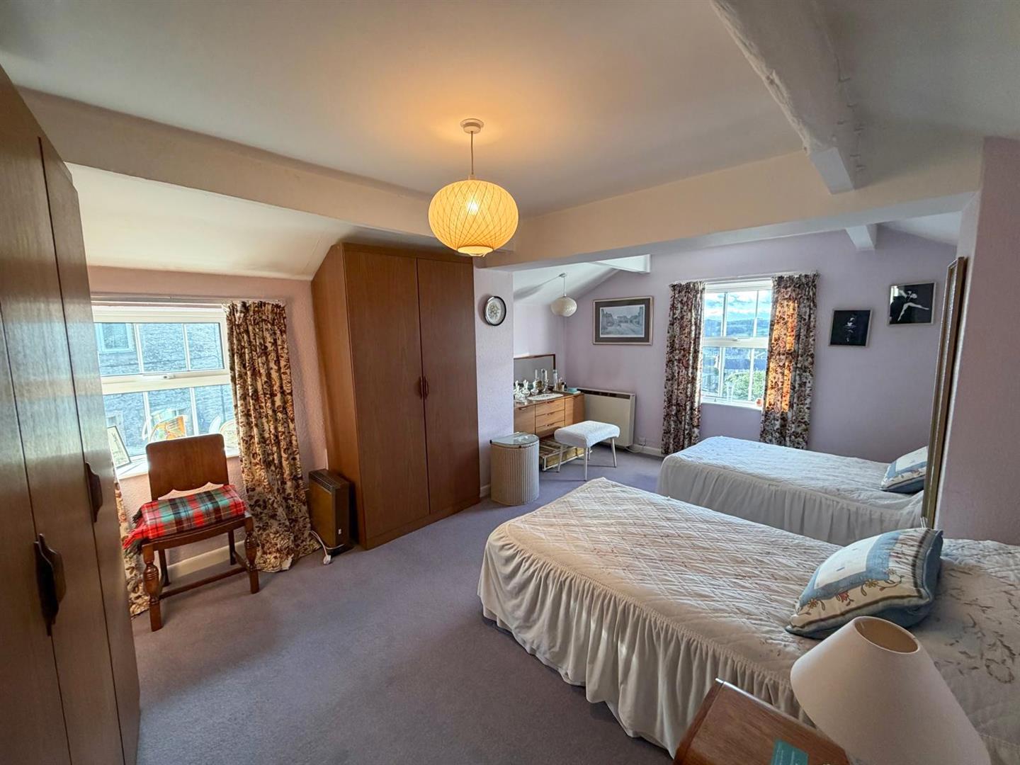 The property is entered via a generous entrance porch which leads into a delightful sitting and dining room, featuring a characterful open fireplace and French doors opening onto the front garden, an ideal spot from which to enjoy the awe-inspiring views. The kitchen is located to the rear of the property, while the first floor offers a house bathroom, a spacious double bedroom, and a single bedroom with dual-aspect windows, both enjoying plenty of natural light.
