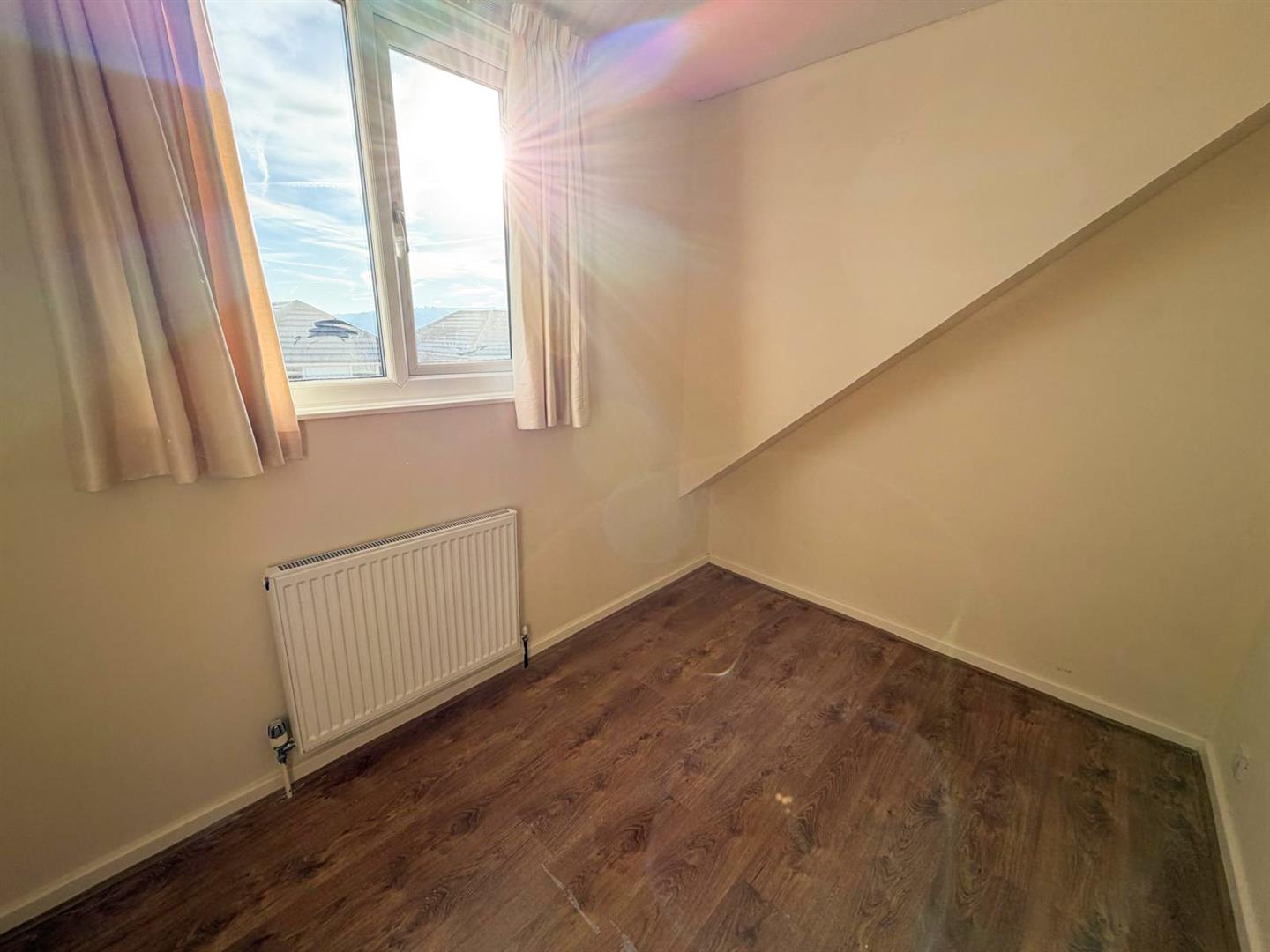 Ascending to the first floor, a side elevation window and built-in cupboard offer additional storage and natural light. The master bedroom features a large picture window and laminate flooring, while the two additional bedrooms provide lovely long-distance views, perfect for enjoying the serene surroundings.