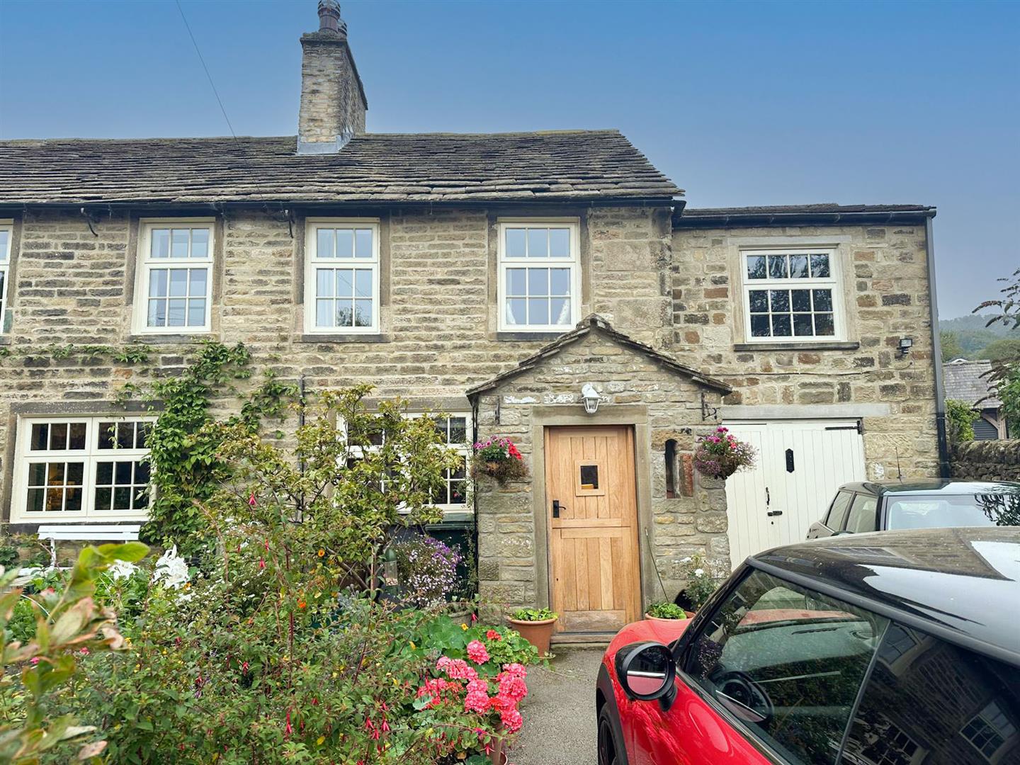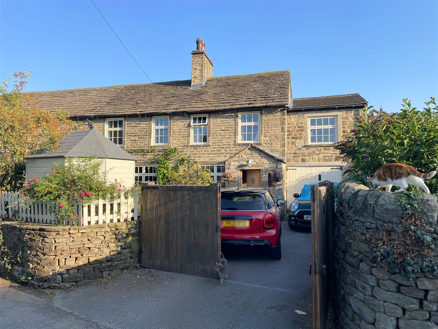 Outside, the house is equally appealing. A generous flagged cottage garden, with sleeper bed planters and enclosed by high walls and timber gates, enjoys a sheltered sunny aspect and includes a summer house, perfect for long summer evenings. To the side, there is an excellent single garage with power, lighting and access to a further rear garden area. Secure gated off-road parking is provided for two vehicles, with scope to create additional space if required.