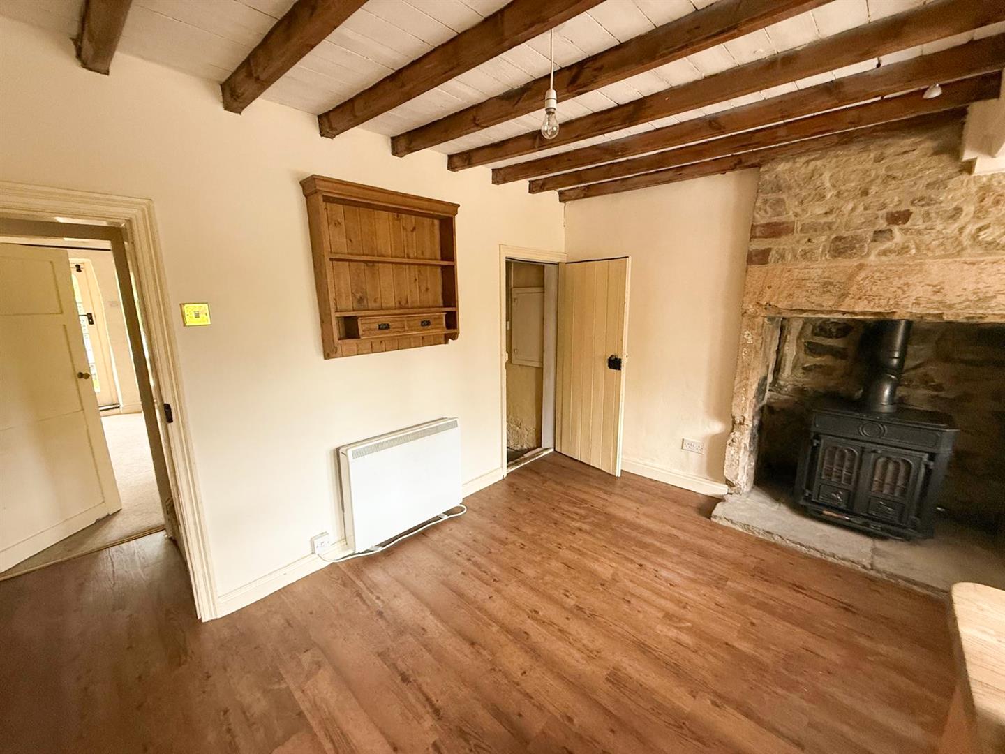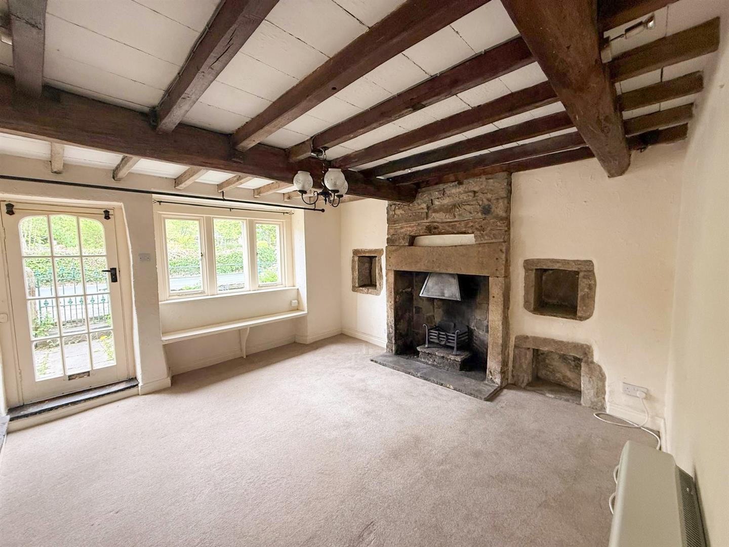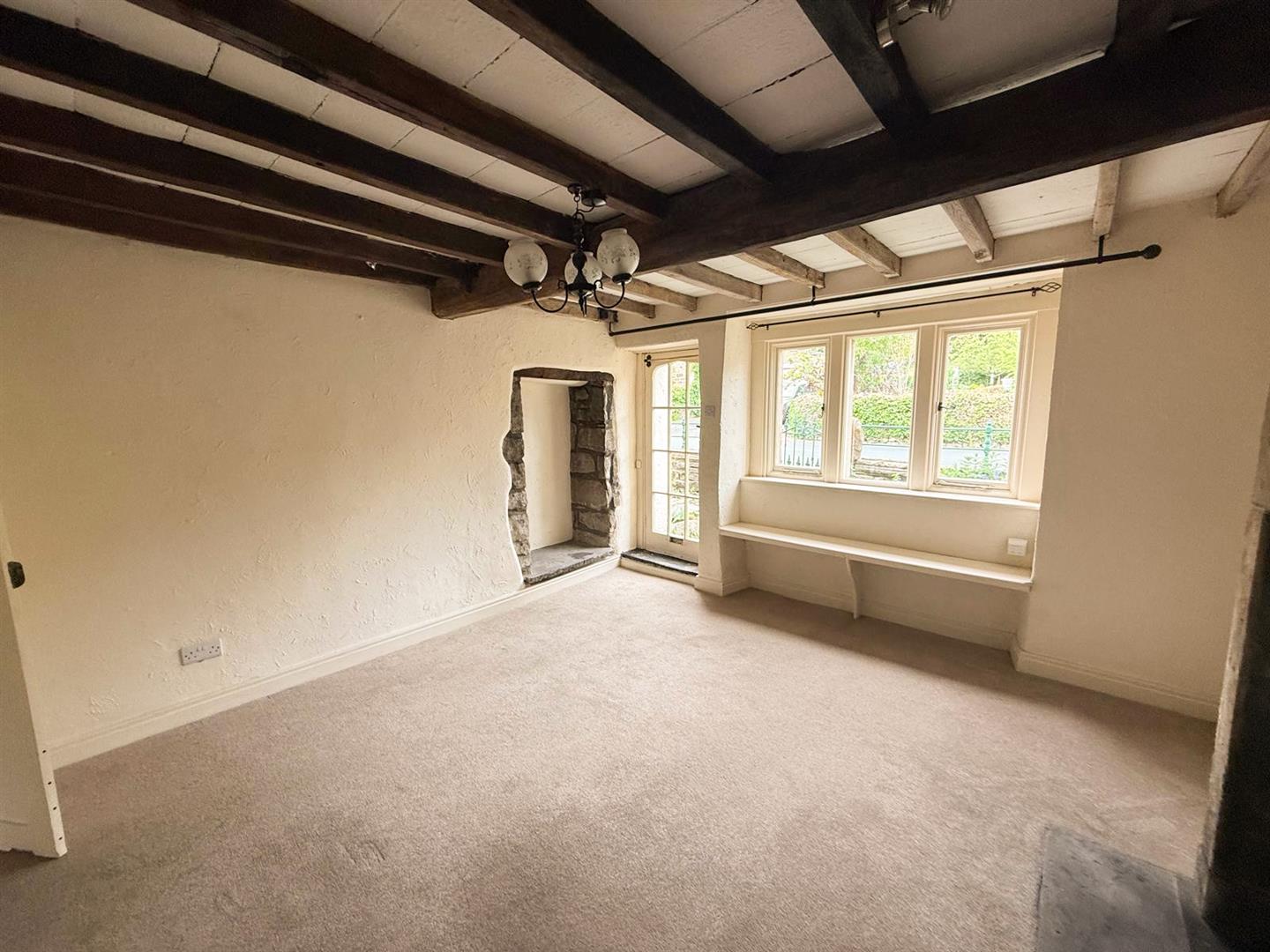 From the moment you step through the front door, the warmth and welcoming atmosphere of the cottage is unmistakable. The spacious sitting room exudes old-world charm, featuring exposed stonework, ceiling beams, and a beautiful stone fireplace, complete with a unique Scott’s window and a fascinating old weapon store cleverly built into the chimney breast. A window seat beneath the picture window offers a cosy spot to enjoy views.