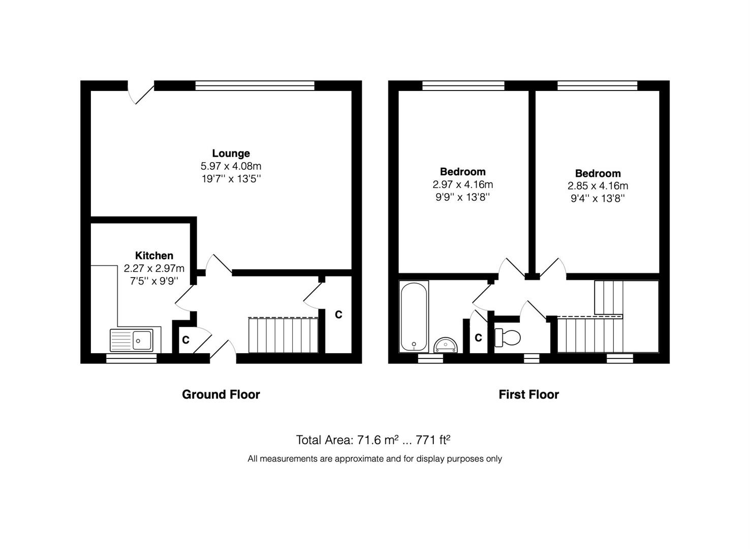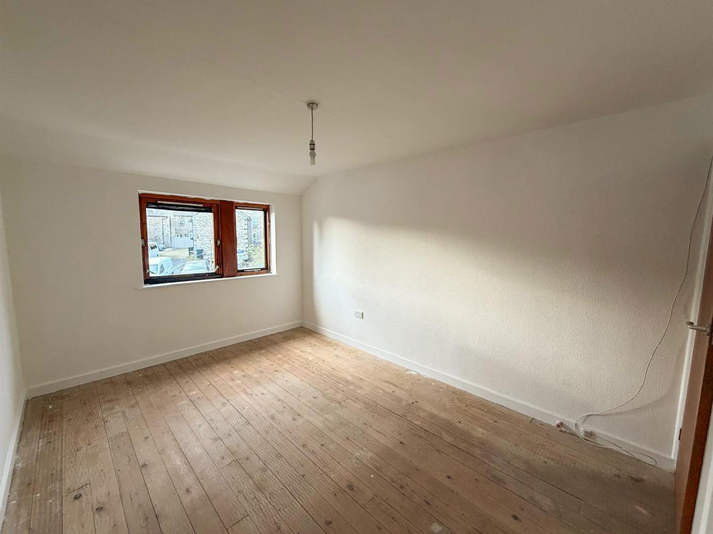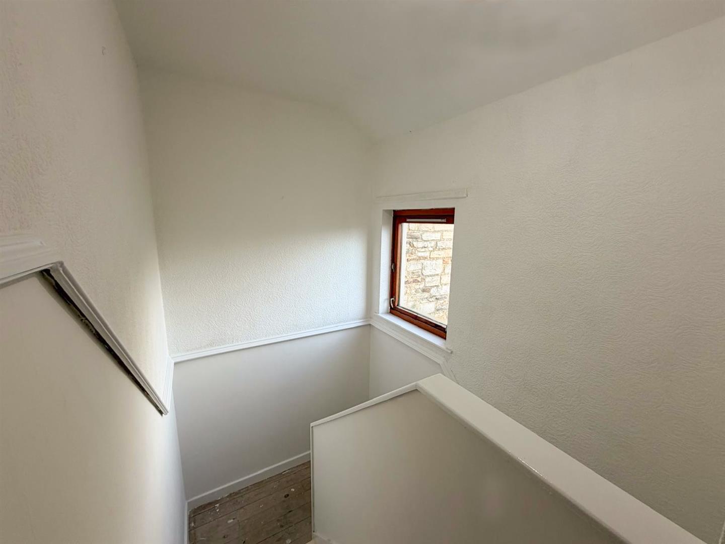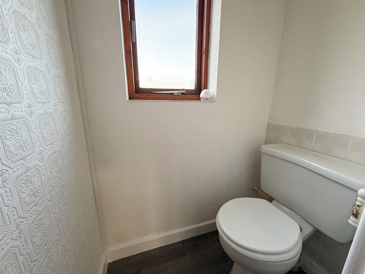 The property opens with a covered entrance and handy bin store before leading into a hallway with open staircase, generous sitting room, filled with natural light and opening directly onto the rear garden. The newly fitted kitchen adds a contemporary touch, featuring a sleek stainless-steel sink and attractive cupboards in white with laminated beech-block worktops. Upstairs, two well-proportioned double bedrooms are complemented by a house bathroom and separate W.C. The rear garden is fully paved for easy, low-maintenance outdoor living.