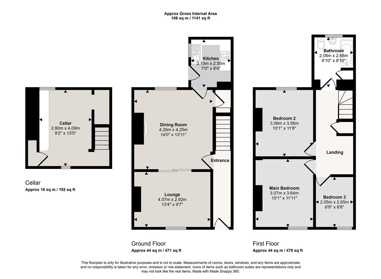 The stylish kitchen to the rear is both practical and well-appointed, offering modern fittings and direct access to the outside. A generously sized cellar with excellent head height provides valuable additional storage space and potential for further use.