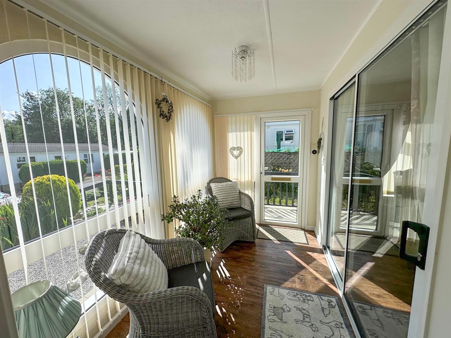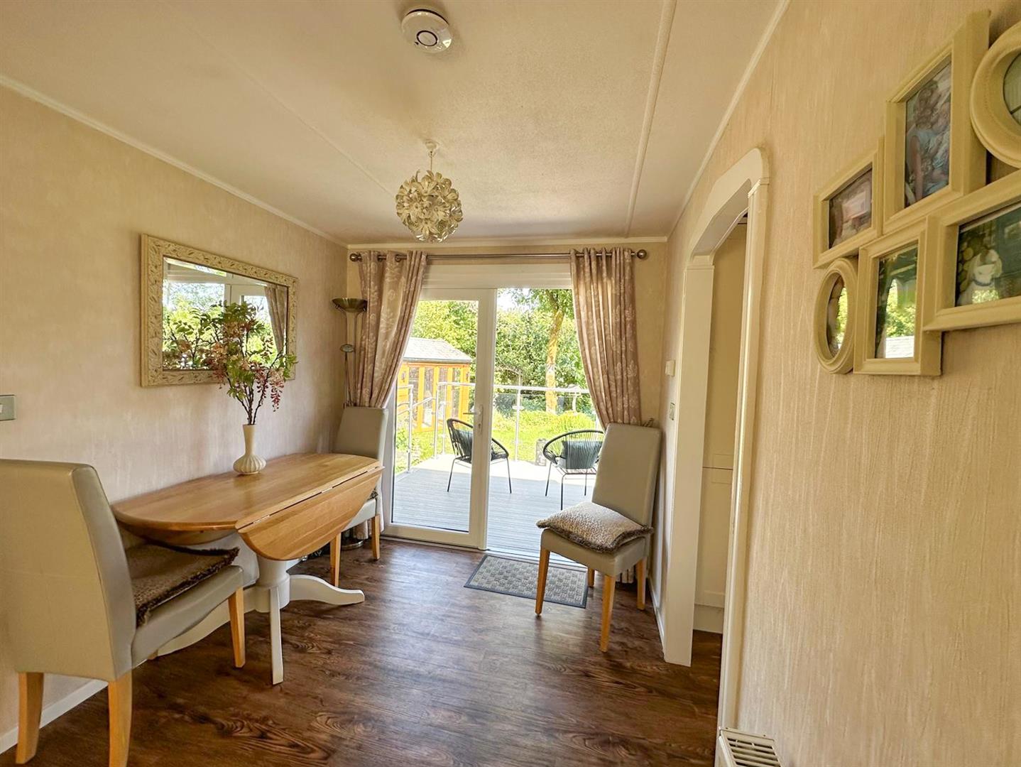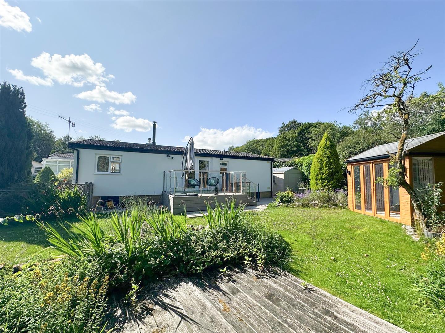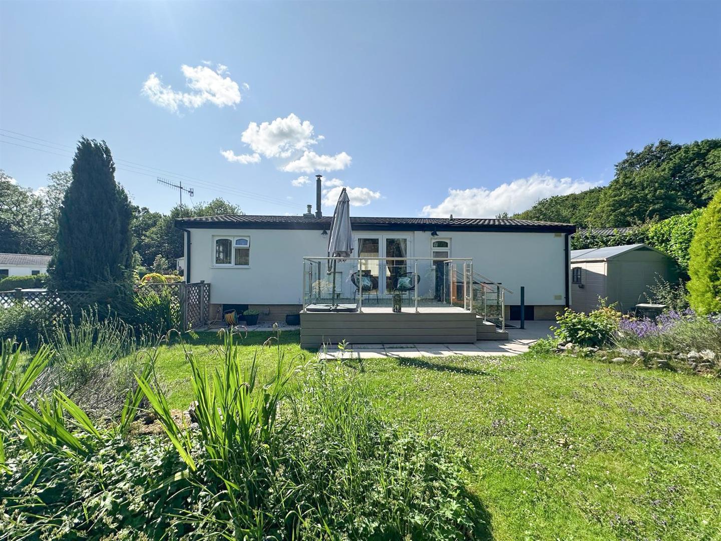 A stunning two double bedroom park home set in magnificent gardens adjoining open woodland. This lovely home has been upgraded and insulated over recent years to offer contemporary and extremely stylish accommodation therefore early viewing is strongly recommended. With: French doors leading into the dining area, generous sitting room with top of the range wood burning stove, garden room, stylish generously equipped kitchen, two double bedrooms with fitted furniture plus luxury shower room. Outside there is a raised deck area with glass balustrade with lift and stairs leading to a stunning garden with added bonus of a super summer house with electricity and bi-folding doors, two further useful sheds and private parking plus visitors parking.
