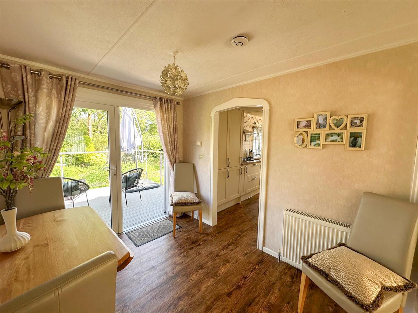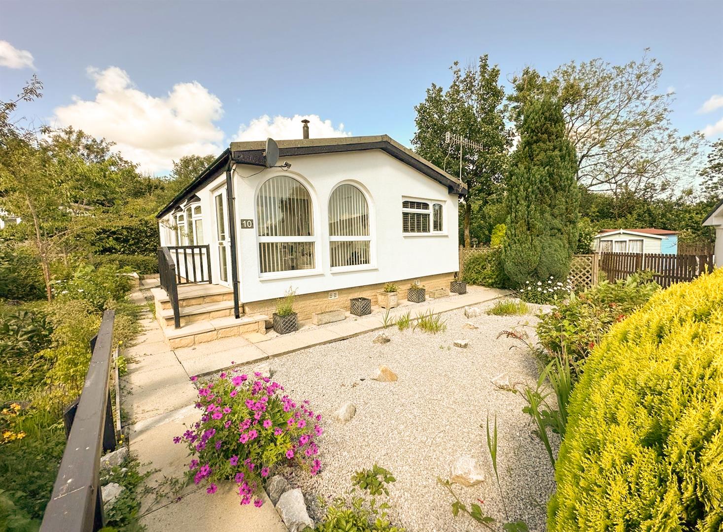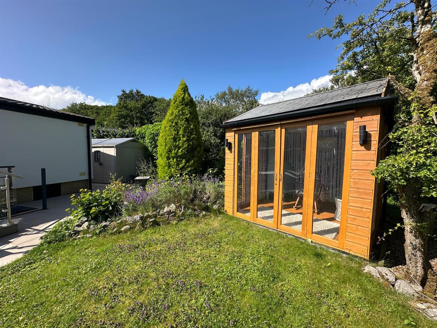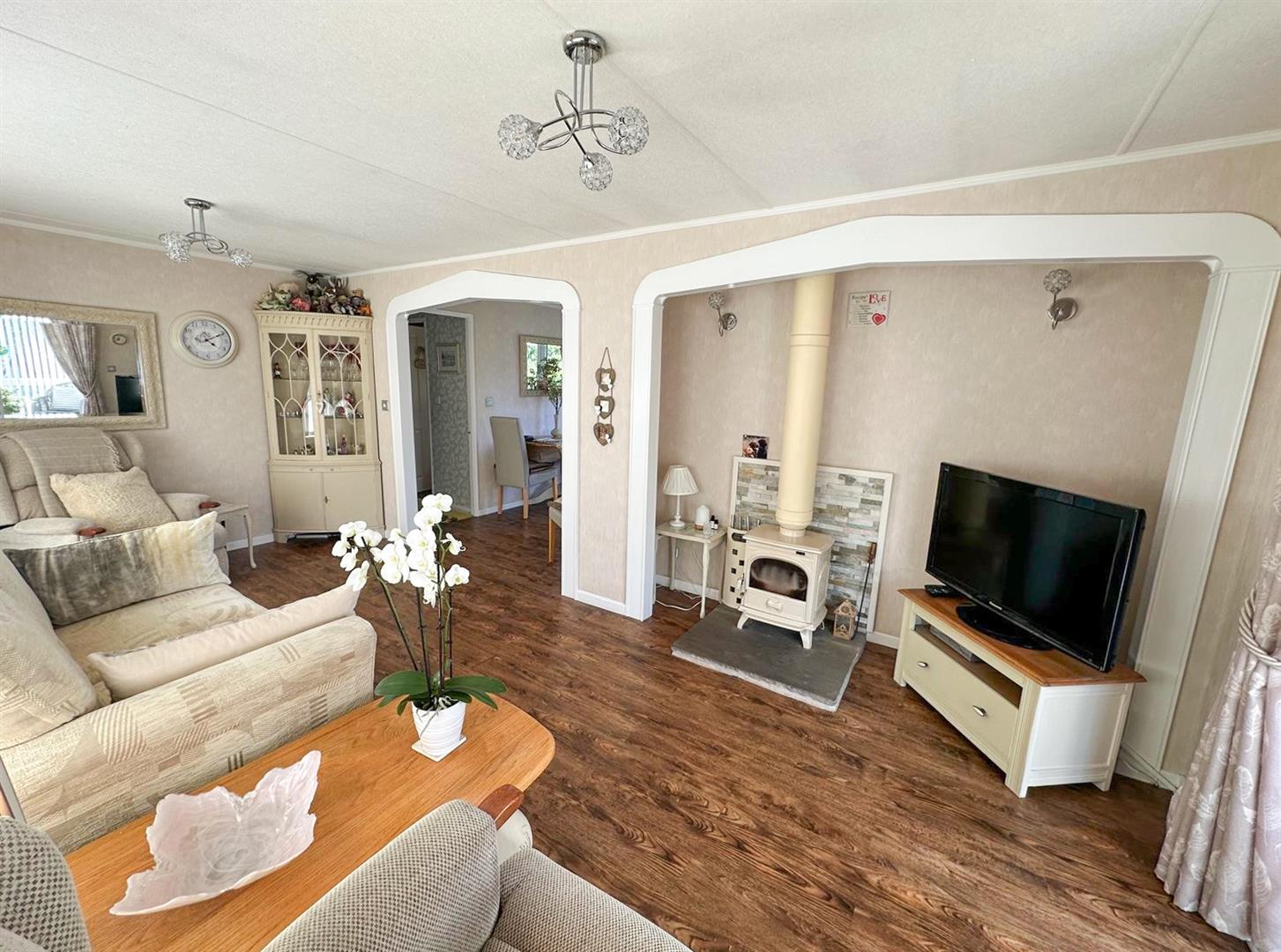 A stunning two double bedroom park home set in magnificent gardens adjoining open woodland. This lovely home has been upgraded and insulated over recent years to offer contemporary and extremely stylish accommodation therefore early viewing is strongly recommended. With: French doors leading into the dining area, generous sitting room with top of the range wood burning stove, garden room, stylish generously equipped kitchen, two double bedrooms with fitted furniture plus luxury shower room. Outside there is a raised deck area with glass balustrade with lift and stairs leading to a stunning garden with added bonus of a super summer house with electricity and bi-folding doors, two further useful sheds and private parking plus visitors parking.