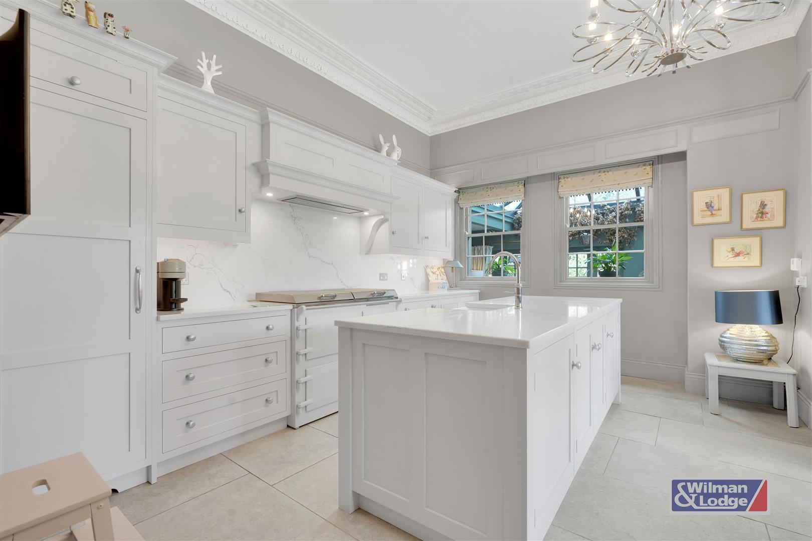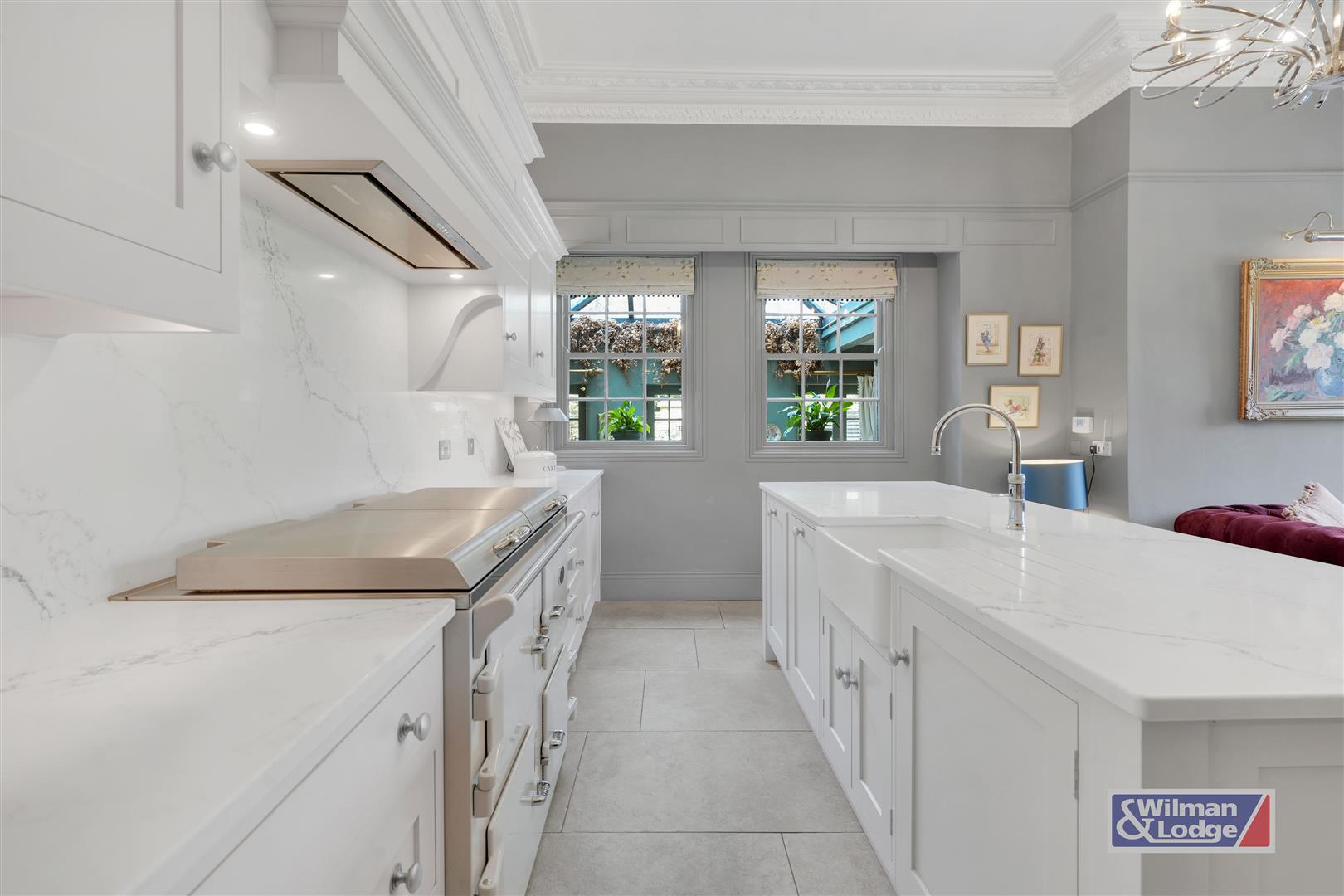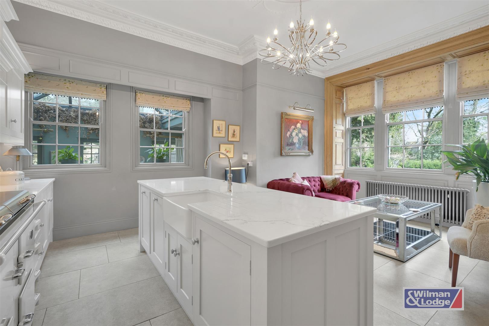 As you approach through the stately gated entrance, the allure of this magnificent property becomes immediately evident. Stepping into the entrance vestibule, you are greeted by an ambiance of timeless sophistication that leads into the breathtaking main hall. To the left, the exquisite sitting room unfolds, seamlessly connecting to a charming library/study, creating a perfect space for relaxation or intellectual pursuits. To the right, the living kitchen, featuring Everhot oven, quartz work tops, Quooker tap and handmade custom cabinetry by Grove House Bespoke Kitchens, awaits, boasting panoramic views over the meticulously landscaped gardens. A useful cloakroom and a sun-drenched, newly fitted lantern roofed garden room, opening to a serene courtyard garden complete the ground floor.