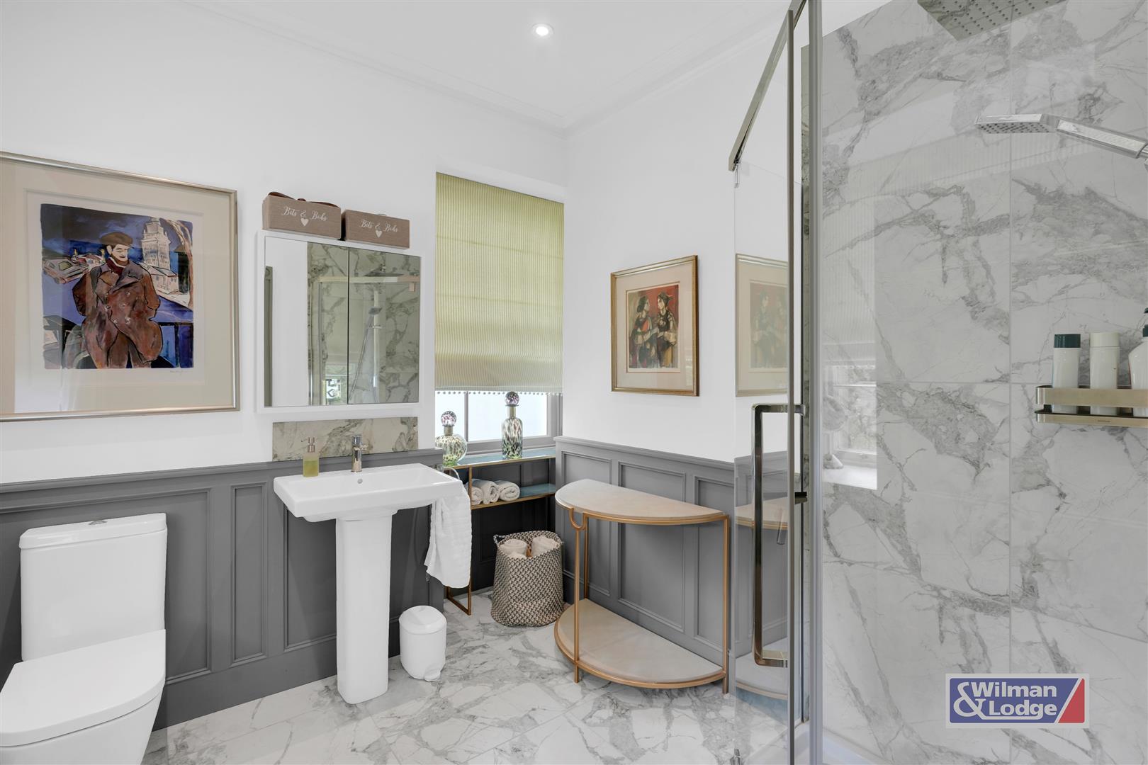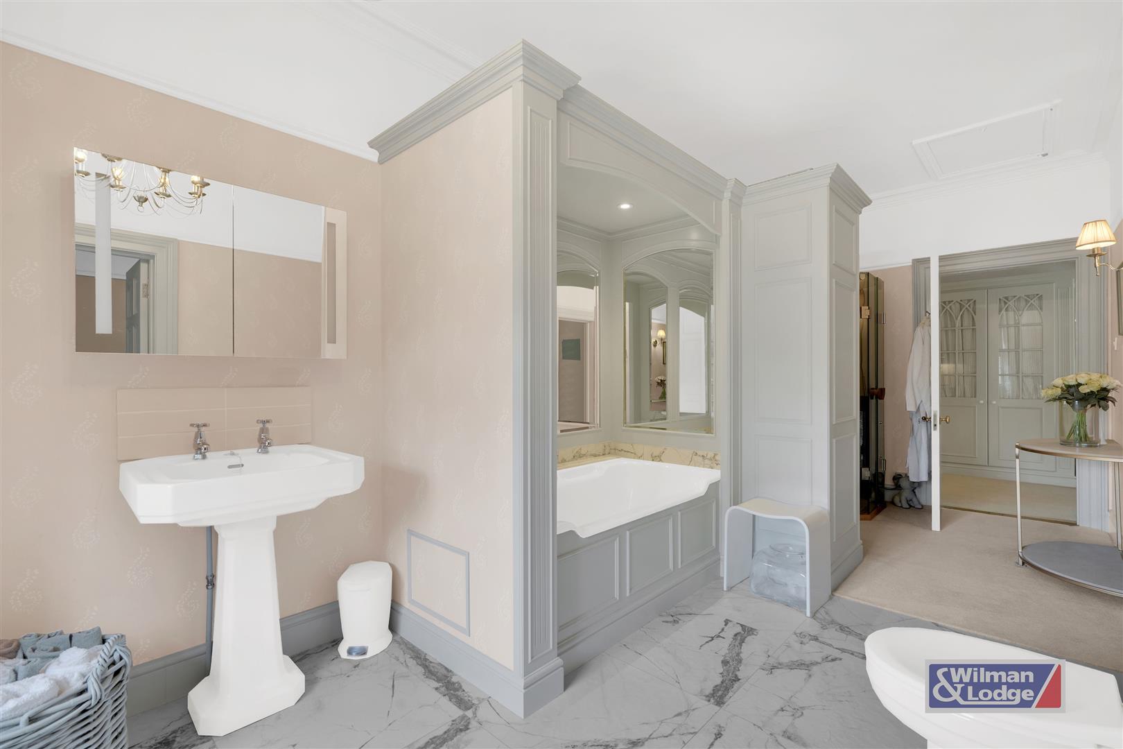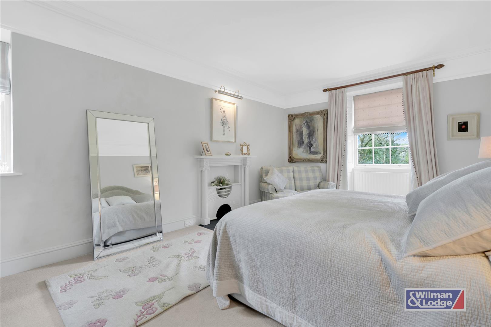 Ascending to the first floor, the half-landing showcases a distinctive crescent window, bathing the space in natural light. The spacious landing, adorned with built-in furniture, leads to the master suite, a sanctuary of comfort with enchanting views over the gardens and duck pond. This retreat includes a sumptuous bathroom equipped with a private sauna. The second bedroom mirrors the master in both elegance and size, sharing the same captivating vistas. A beautifully appointed house shower room, both luxurious and contemporary, serves this level.