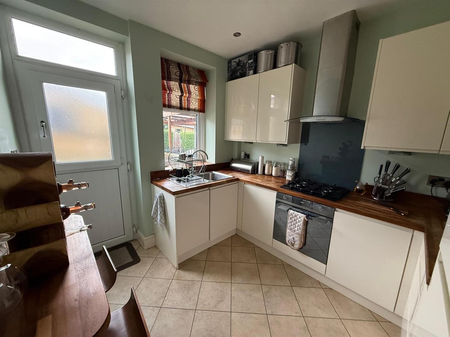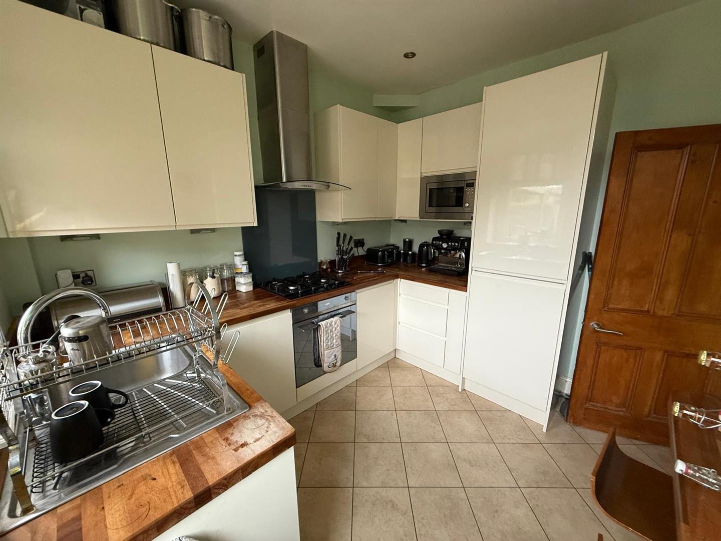 The ground floor welcomes you into a bright and inviting sitting room, complete with a feature gas fireplace that creates a warm and relaxing atmosphere. An inner hall provides access to a useful keeping cellar or utility area, while an open staircase leads to the first floor. The modern, well-equipped kitchen offers ample storage and workspace, with direct access to the rear garden, ideal for entertaining or outdoor dining.
