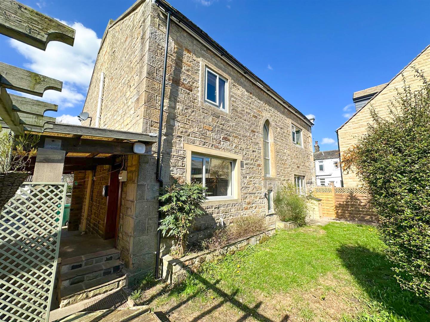 This substantial and characterful period property, offered with no upper chain, occupies a central and highly convenient location. Originally built by a local mill owner at the height of the textile boom, the home is constructed in natural coursed local stone, featuring attractive architectural details such as quoins, corbelled eaves, and a heavy grey slate roof. It offers exceptionally spacious accommodation ideal for a larger or extended family, with the rare opportunity to further develop both the large roof space and the basement, which also houses a spring water well.
