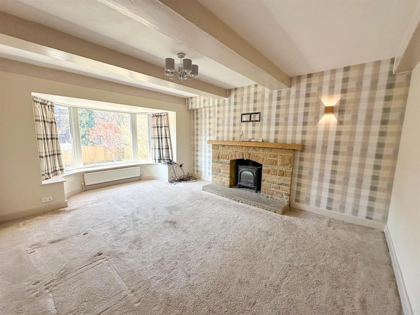 The lounge features a striking stone fireplace with oak railway sleeper mantle, beamed ceiling, chrome chandelier, feature oak wall lights and views of the beck through a splay bay window. There is also a second reception room and a separate dining room, with beamed ceilings and also with similar bay window views across the water.
