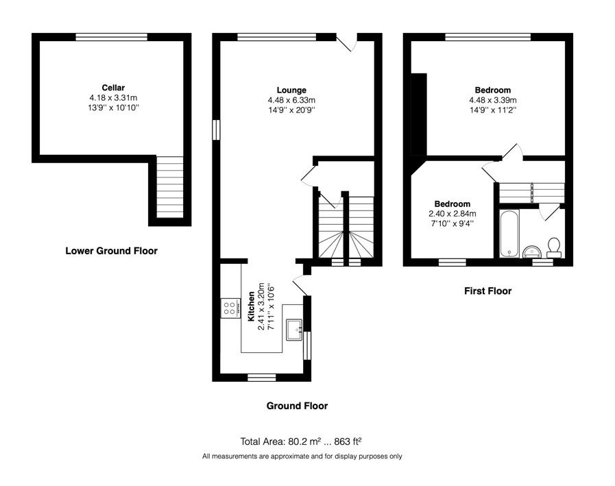 Upstairs, a half landing with a rear-facing window allows further natural light to pour in. The main landing leads to two generously sized double bedrooms, both offering comfortable and versatile accommodation. Completing the first floor is a beautifully appointed three-piece bathroom suite, finished in a modern style.