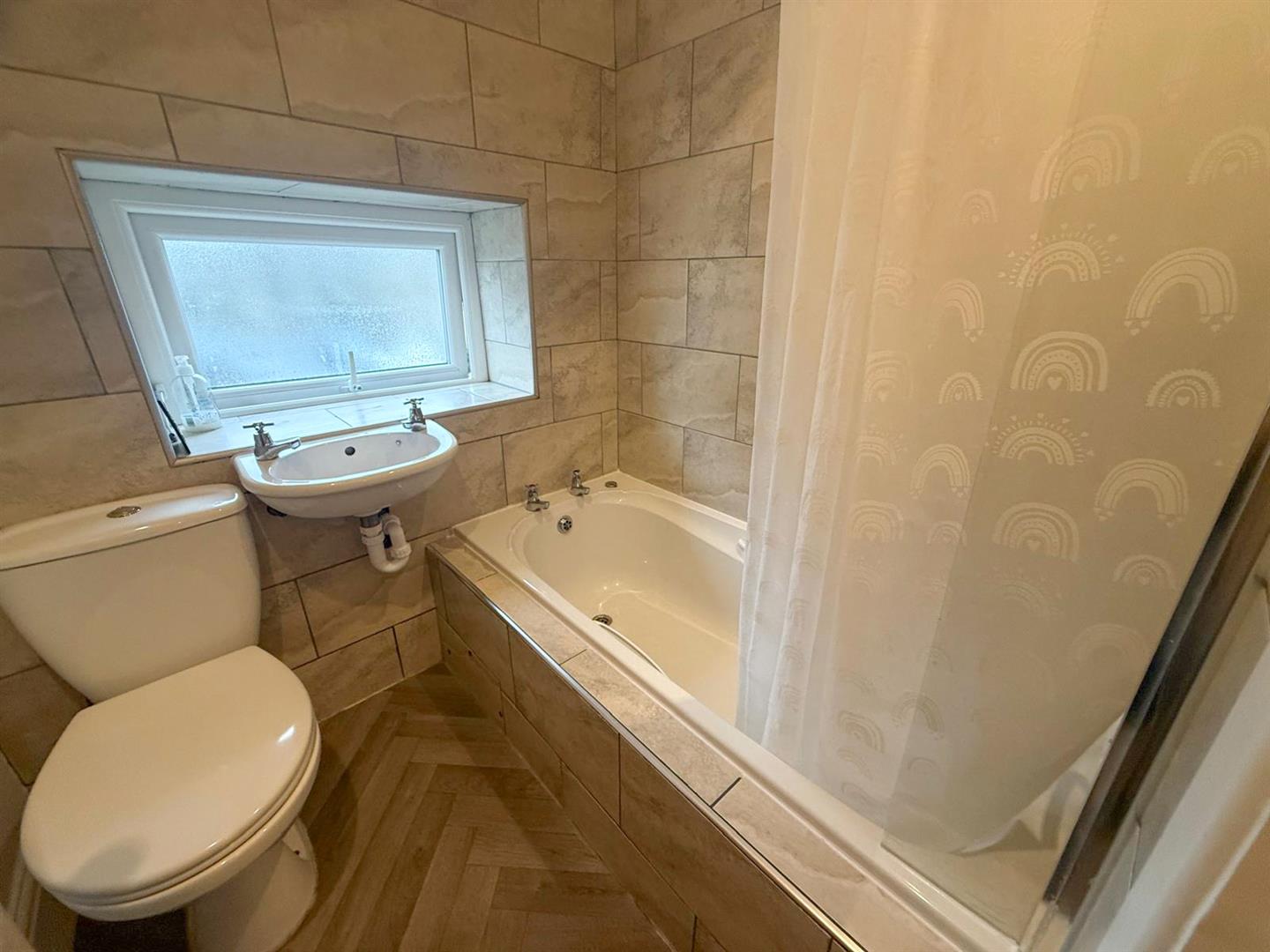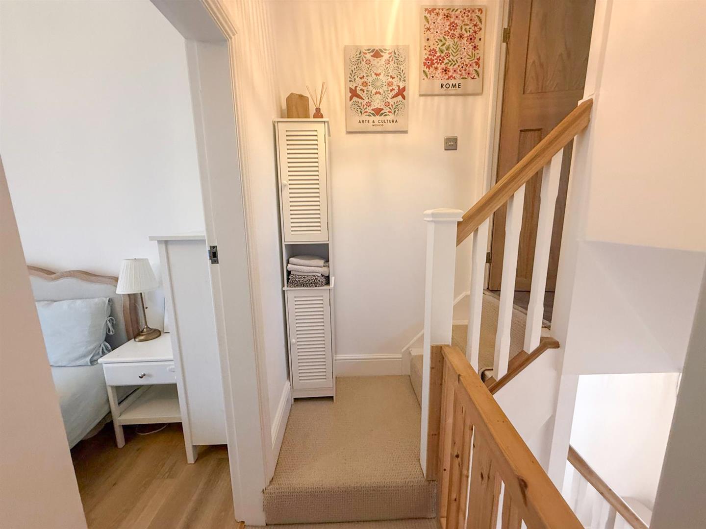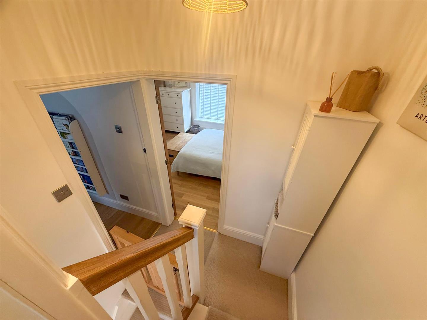 Upstairs, a half landing with a rear-facing window allows further natural light to pour in. The main landing leads to two generously sized double bedrooms, both offering comfortable and versatile accommodation. Completing the first floor is a beautifully appointed three-piece bathroom suite, finished in a modern style.