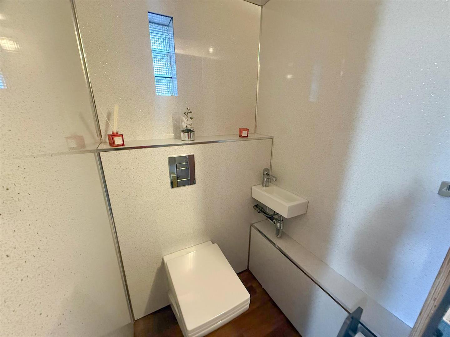 The modern, well-equipped kitchen with integrated dishwasher, enjoys pleasant views over the garden and provides access to a highly useful utility room with WC, along with an additional storage room, enhancing the practicality of the home.