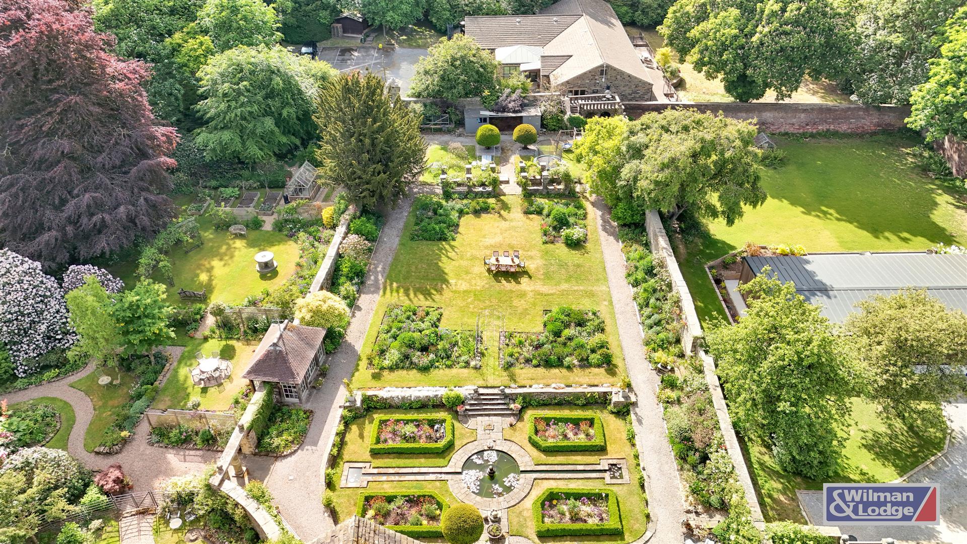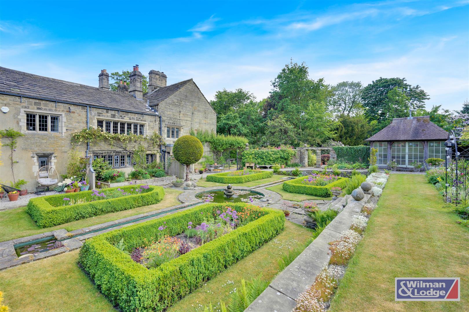 Outside, a gravelled driveway leads to private parking at the side of the property. From here, access to the rear reveals an extraordinary hidden treasure: an enchanting garden that transports you to another era. Designed in the iconic Arts and Crafts style by renowned photographer and garden designer Alex Keighley in 1920, the grounds retain their original features, including a stone-built dovecote—still home to resident doves—a serene formal pond with koi carp, and an architectural pergola constructed from stone. The garden’s charm and beauty are beyond words, demanding an in-person visit to truly appreciate its magic.